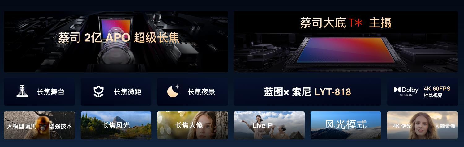 影像方面永远可以相信蓝厂,蓝厂这几年默默的发展“蓝科技”,坚持了自己的蓝图影像特色,延续并升级X100系列的影像优势,新增135mm远摄人像焦段,提升远摄清晰度和美感,支持“超级远摄”和“长焦微距”功能,其中长焦是和X100 Ultra的蔡司2亿APO超级长焦同款,妥妥的最强长焦。
