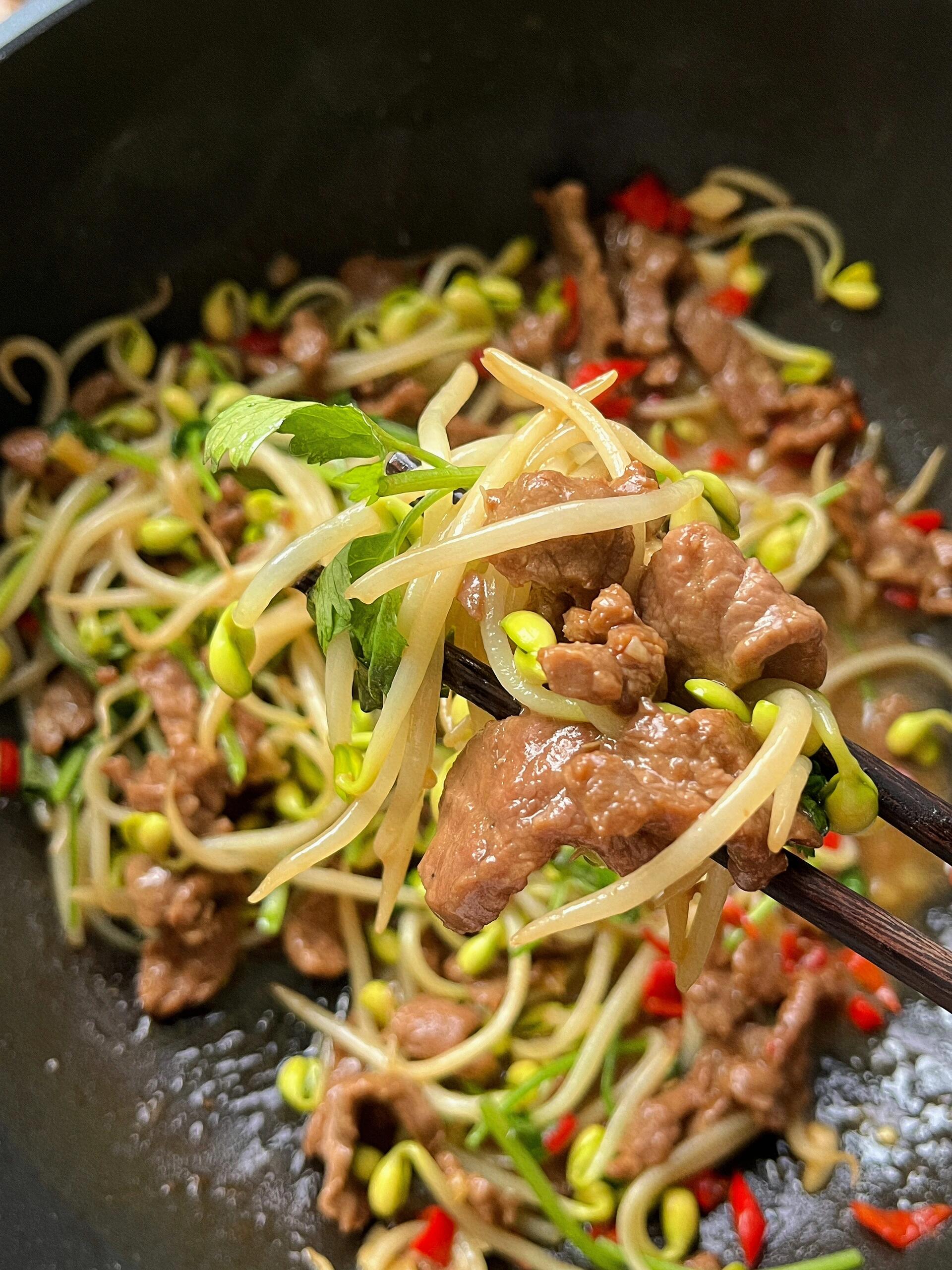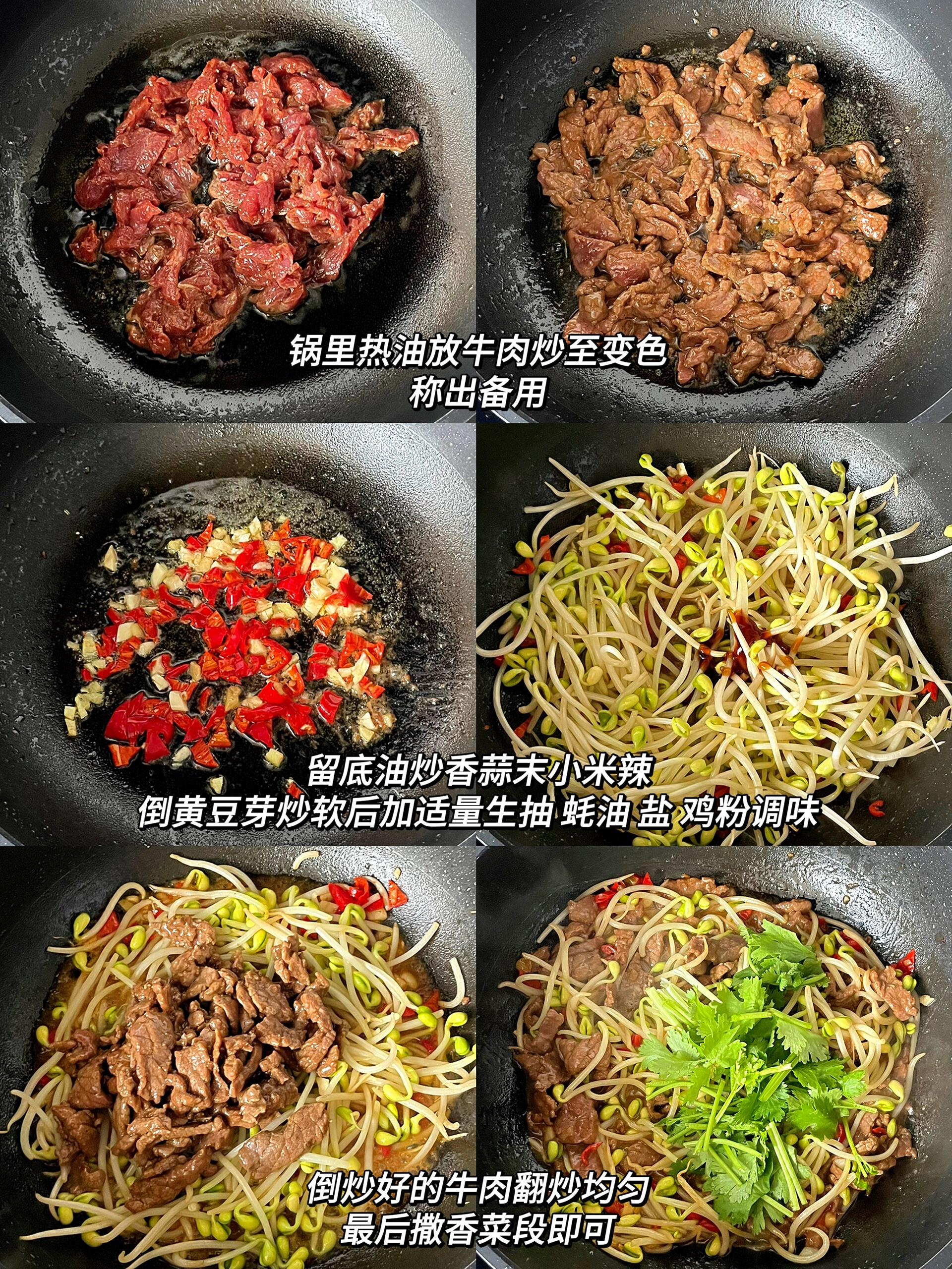 这可太下饭了 脆脆的豆芽鲜嫩的牛肉 放些小米辣或者红线椒辣辣的巨好吃 关键做起来还非常简单 姐妹们可以试试哟~