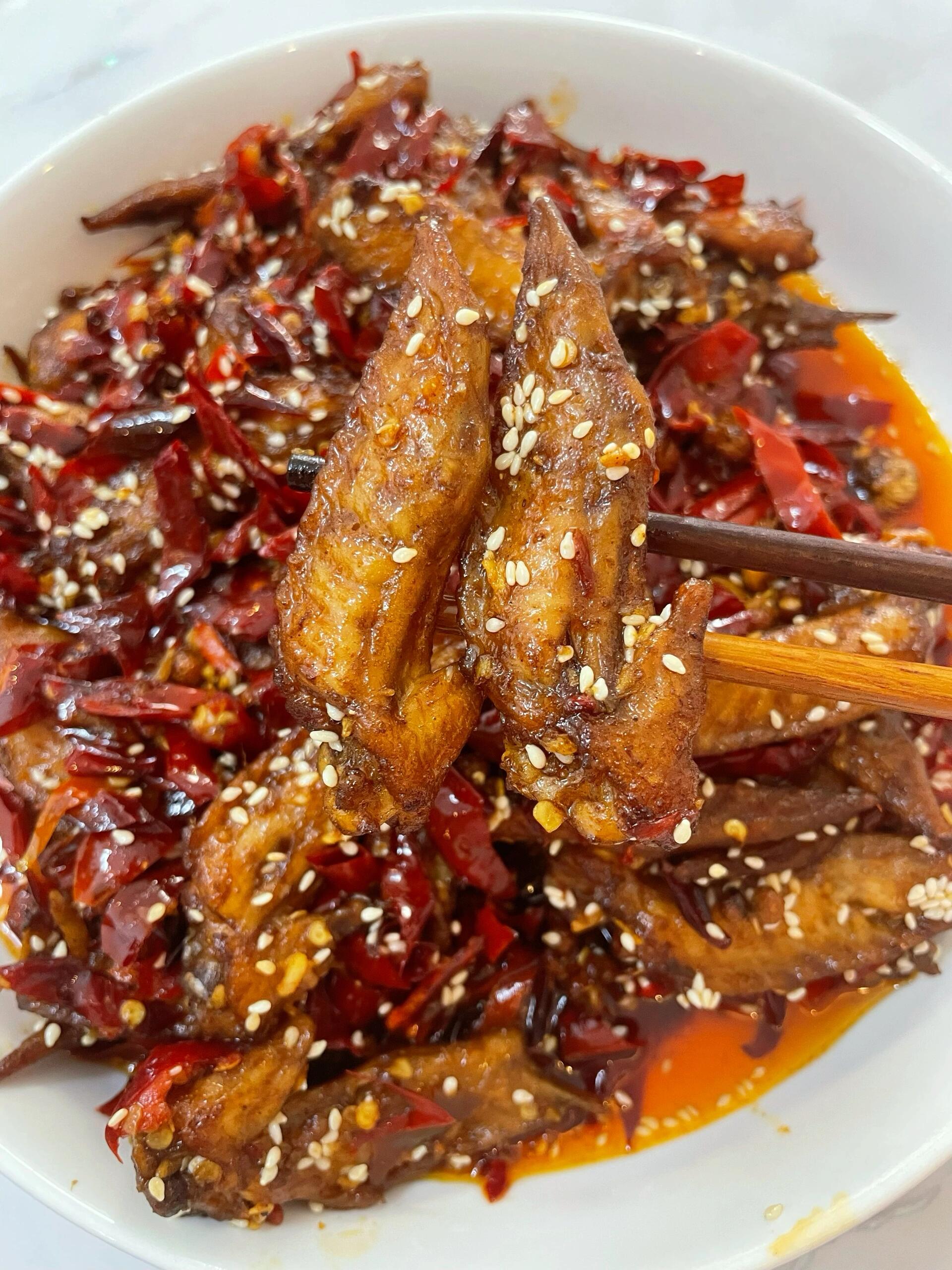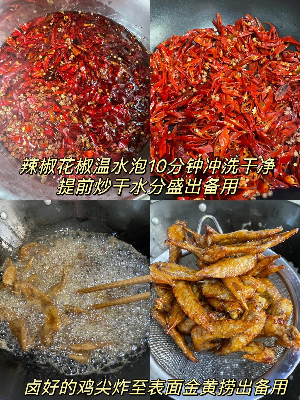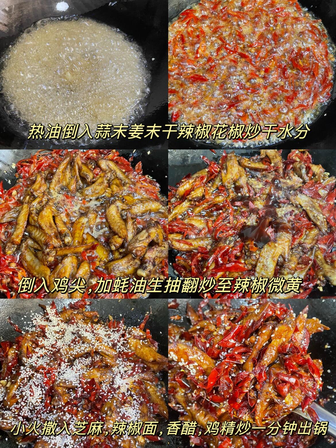 今天分享冷吃香辣鸡尖的做法 食材:鸡尖,姜,蒜,干辣椒,花椒,八角,香叶,桂皮,小茴香,草果,白芷,良姜,大葱 步骤:1、鸡尖冷水下锅,放葱姜料酒焯水捞出,温水冲洗干净备用 2、锅里放入啤酒,清水,老抽,生抽,干料,倒入鸡尖,大火煮开后转中小火焖10分钟关火,后再泡20分钟入味后捞出,放凉 3、另起锅,放入油,烧至六层热,倒入提前泡好的干辣椒花椒,和蒜末姜末,炸一分钟左右 4、再倒入鸡尖翻炒3分钟,关小火进行调味,放蚝油,鸡精,五香粉,十三香,辣椒面,芝麻,少许的香醋继续翻炒3分钟即可出锅 我今天用的卤汁是昨天卤鸭货剩的,所以不再用放那些香料,让鸡尖入个底味是足够的 鸡尖买回来,用水泡10分钟,中途换水,出血水后去去腥味 这样做的冷吃鸡尖,麻辣鲜香,口感酥脆,特别好吃。喜欢的朋友赶紧收藏起来,有空的时候试一试吧!