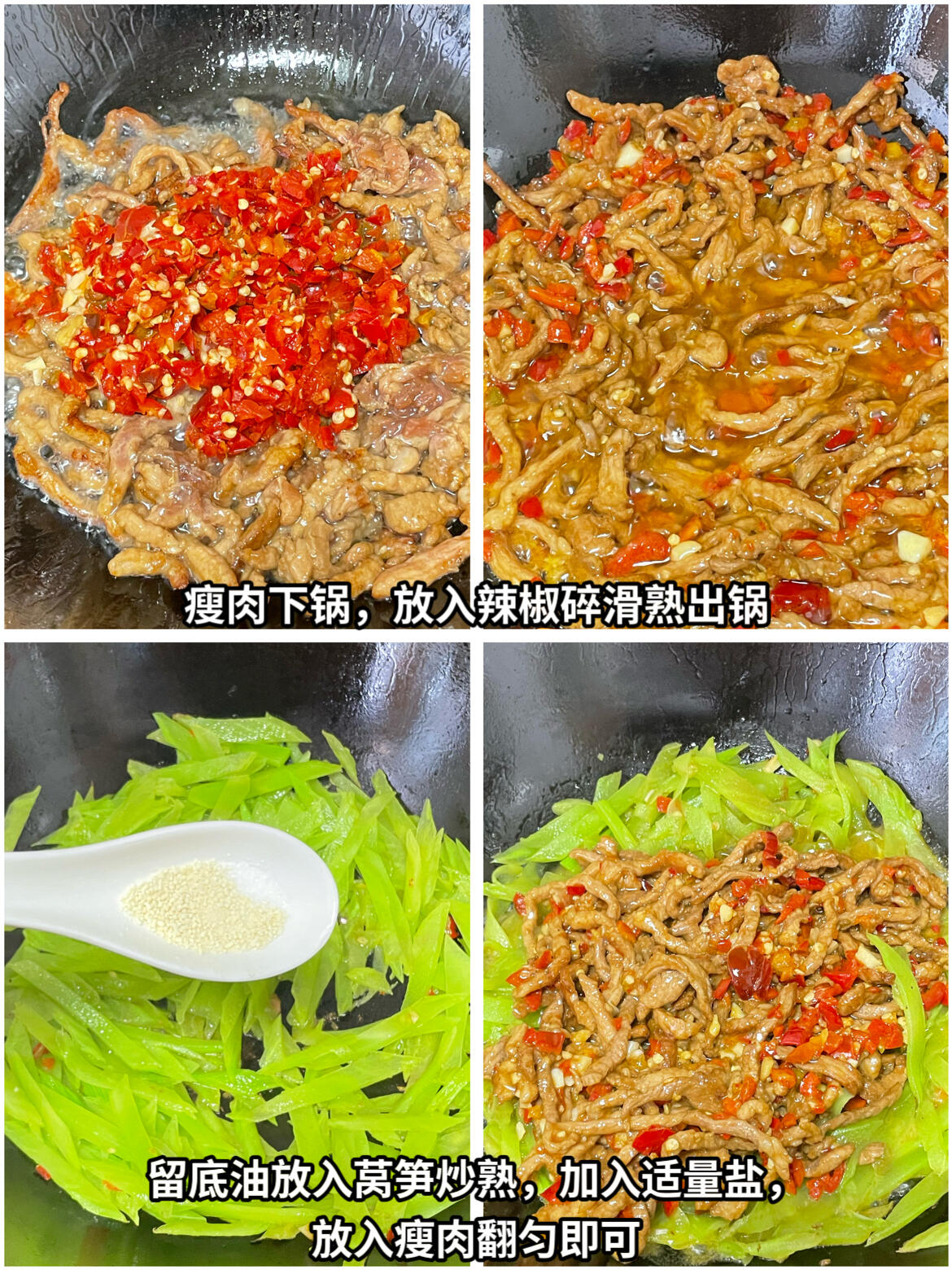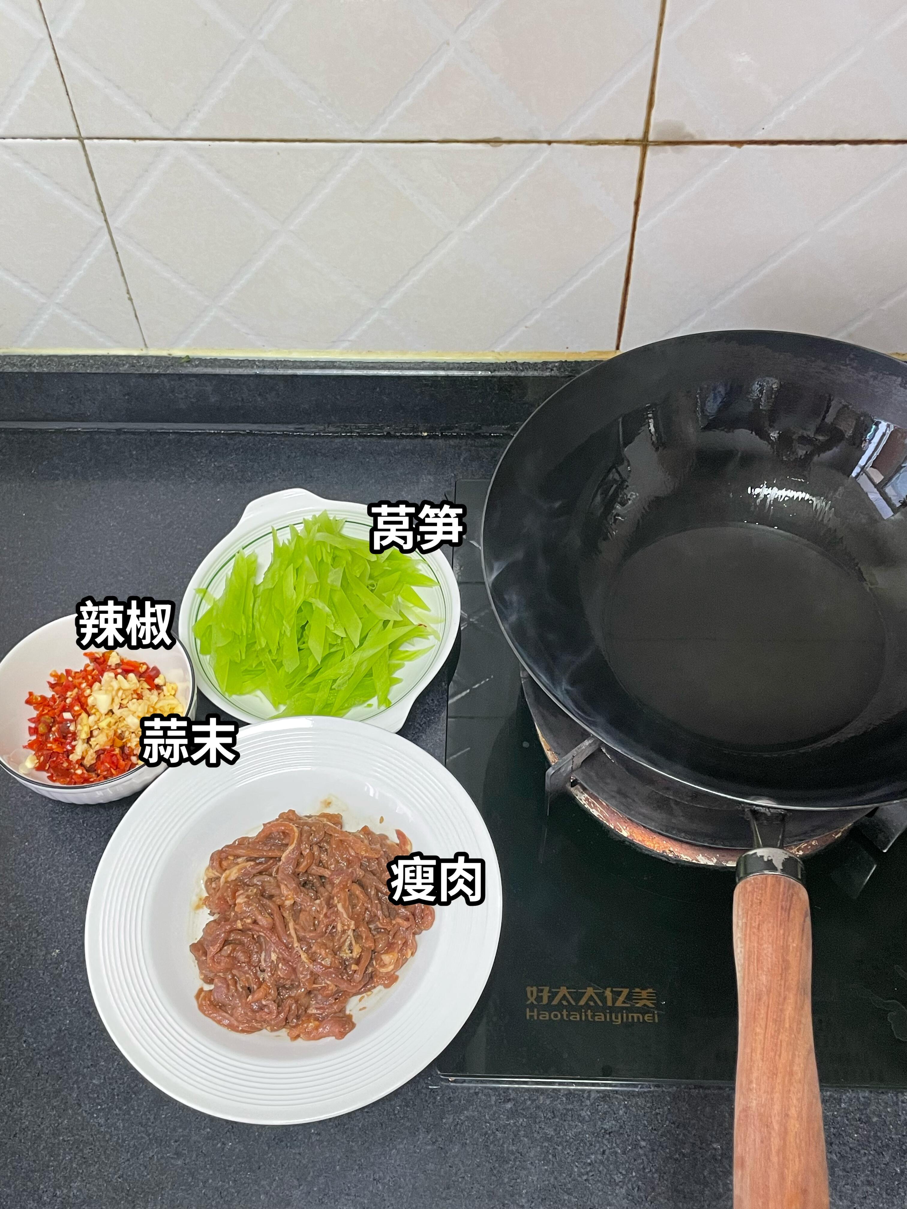 喜欢吃辣的姐妹一定要尝试一下这样的做法,做法简单,大家可以试一试。 食材:瘦肉,莴笋 做法: 1、瘦肉切丝,放入胡椒粉、花椒粉、米酒、蚝油、老抽、淀粉、生抽,抓匀腌制10分钟。不要放料酒,米酒炒出来是香的。 2、起锅烧油,油热。将瘦肉放入锅中,加入小米辣碎和蒜末翻匀滑熟盛出备用,留底油,放入莴笋炒熟,加入适量的盐,再倒入瘦肉翻匀即可出锅。