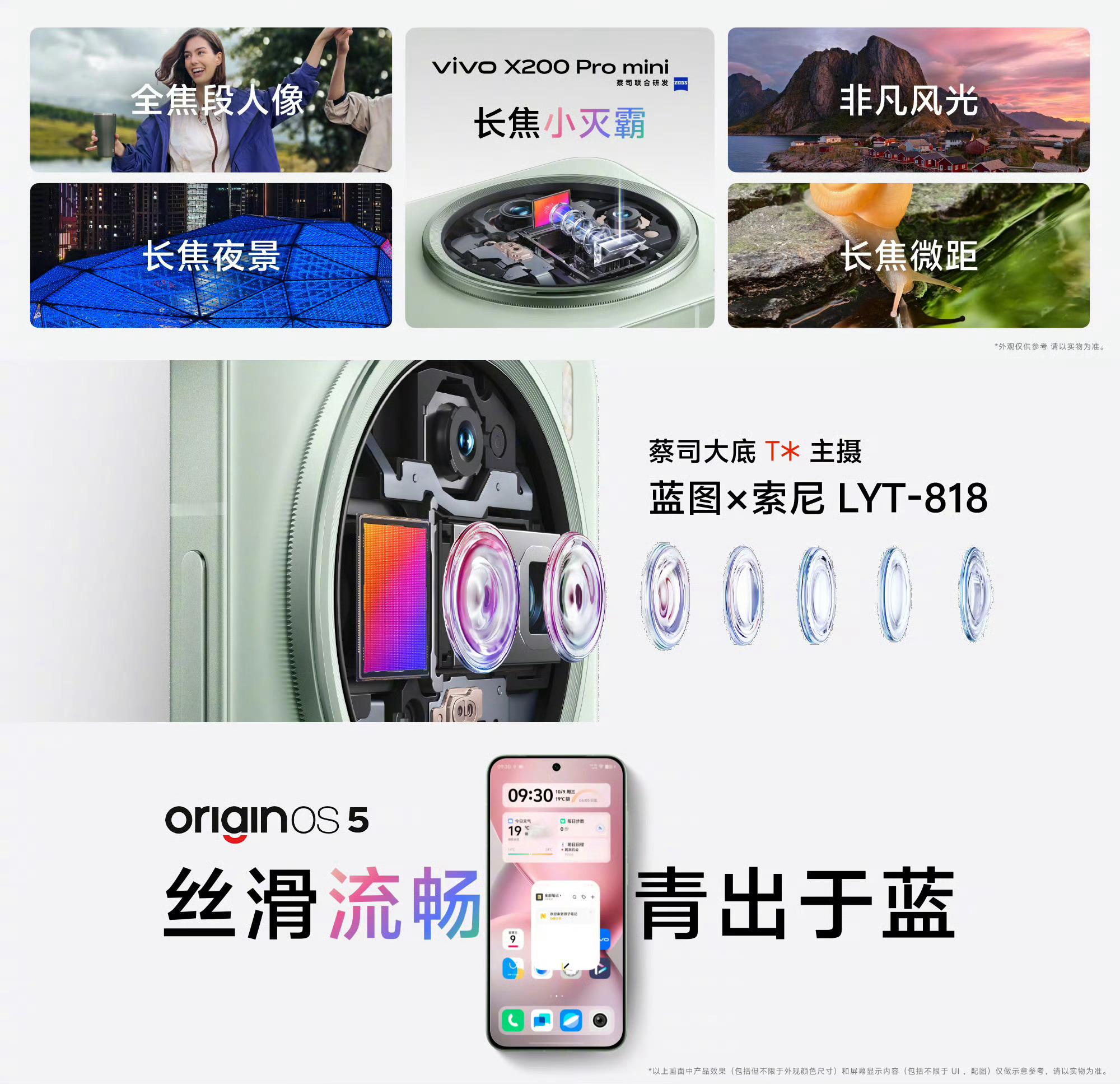 6.31英寸极窄屏幕黑边, Pro级续航,5700mAh蓝海电池,蔡司超级潜望长焦、X200 Pro 同款主摄——蓝图×索尼 LYT-818,蓝晶×天玑9400、3nm全大核、90W大快充,大家觉得 #vivoX200Promini# 如何?