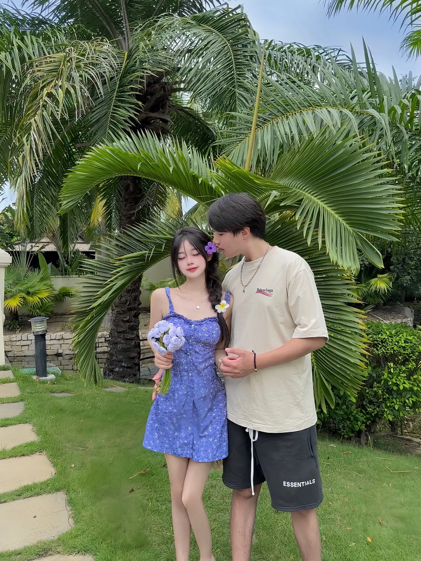 爱是什么我想爱就是:看到了和我衣服搭的花花摘下来献宝一样戴在了我的头上🪻