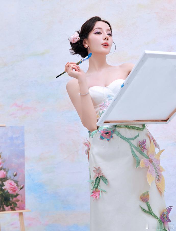#迪丽热巴油画花仙子既视感##迪丽热巴用花枝绘出最美的玫瑰#迪丽热巴就像油画中的迷人花仙子,用花枝绘出最美玫瑰,魅力四溢。