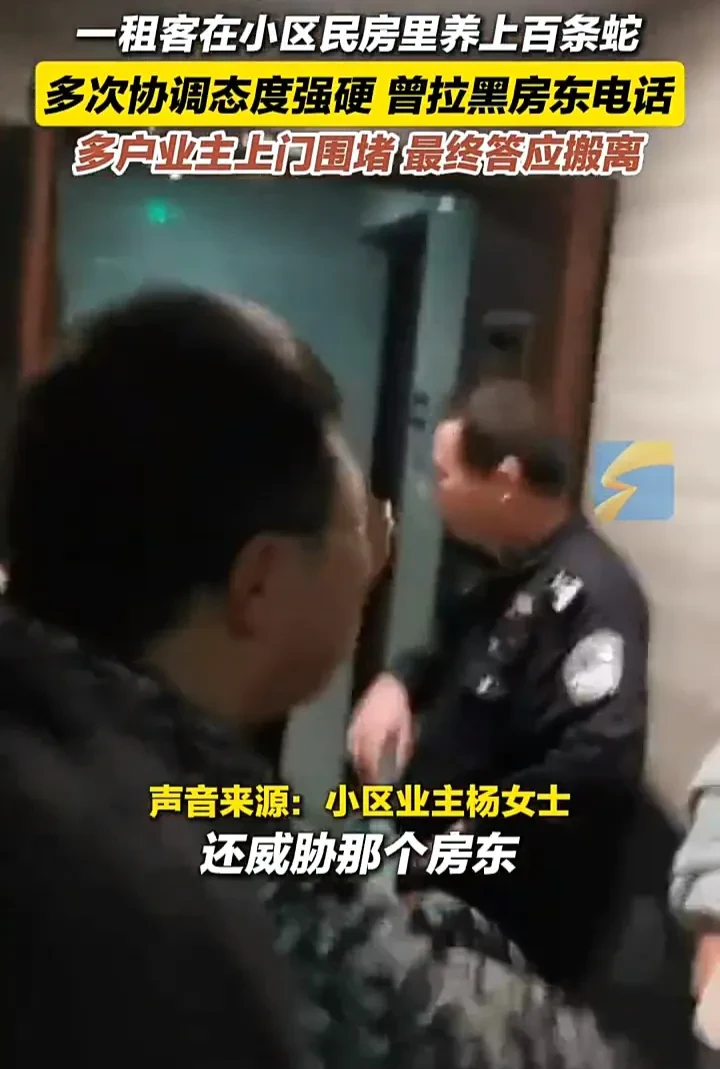 10月14日,四川成都一小区内,多家业主聚集在一名租客房门口,表示要让他赶紧搬走。据悉,该名租客在房内饲养了上百条蛇,引起了周边业主的恐慌,甚至不听其他业主的劝告,将房东的电话也拉黑了。