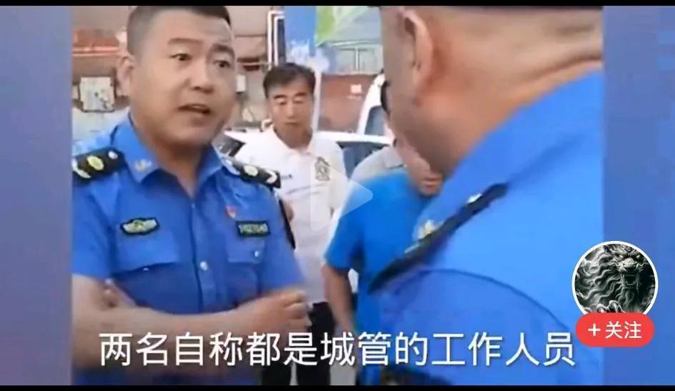 山西大同一公园门口上演真假“城管”之争,都穿制服,制服都有编号,都有肩花等,一看