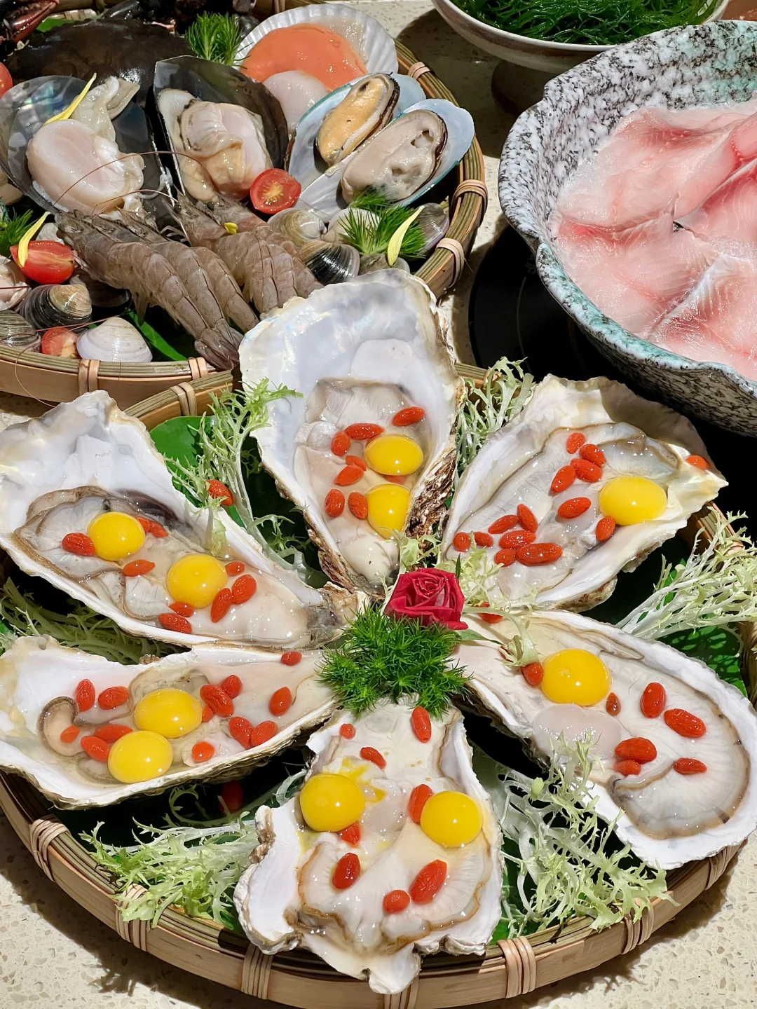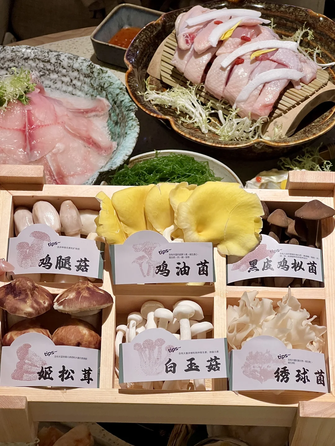 各种海鲜、菌菇拼盘…菜品很新鲜