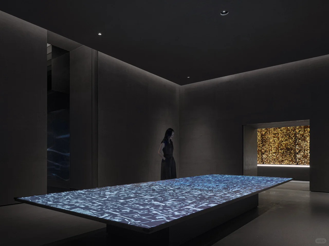 自然光照射在镂空的城市地图上形成了模糊轮廓的光影,通过光影明暗中可感知到时光的流逝。
