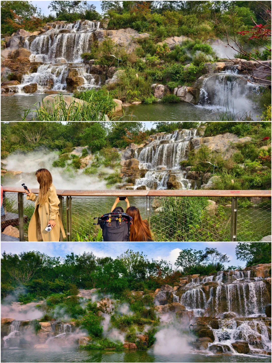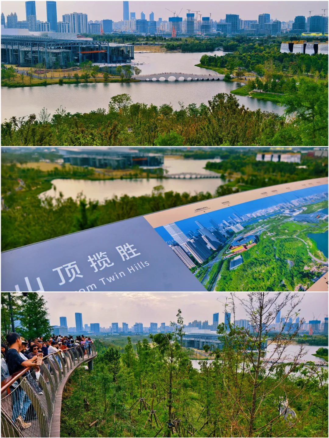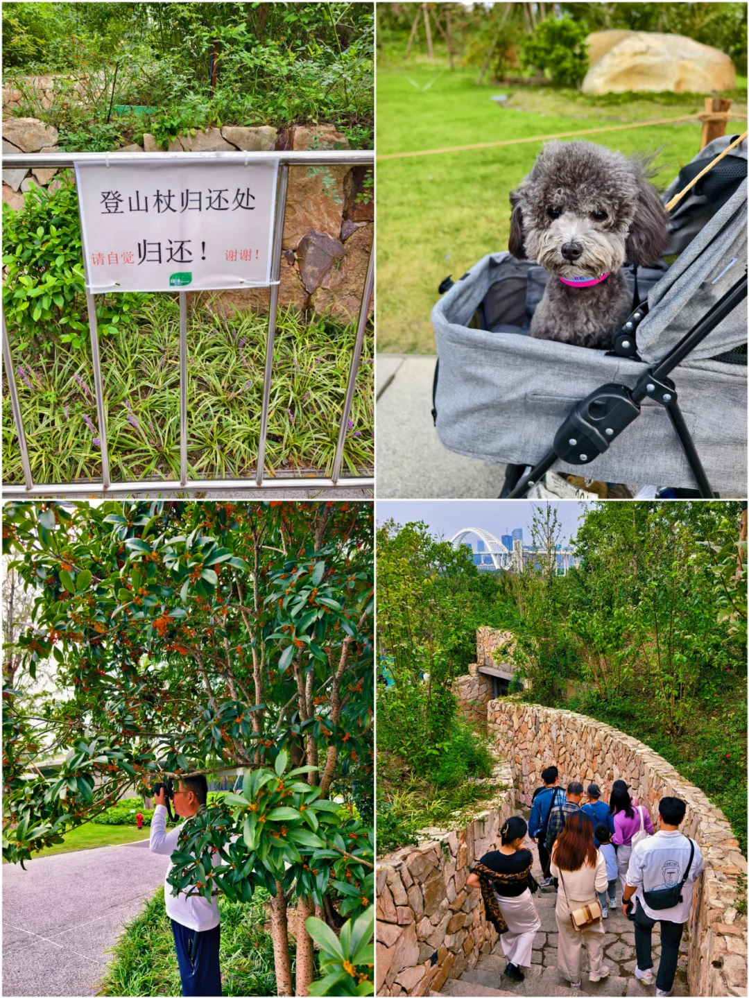 🔥2024年9月20日, 耗时多年,海拔4800CM的双子山对外开放了,世博文化公园不用预约,但登双子山要预约。 🔥 虽然只是个人造山,但登山阶梯、各式瀑布、观景平台等等一个也不少,还有山脚的儿童乐园、半山的咖啡店等等。 🔥 景区竟然提供登山杖租借服务,这个梗也被游客玩坏了。很多人问登双子山有没有高反?要不要服用红景天? 🔥正是桂花飘香的季节,但不知为何春季才开花的八棱海棠也开花了?