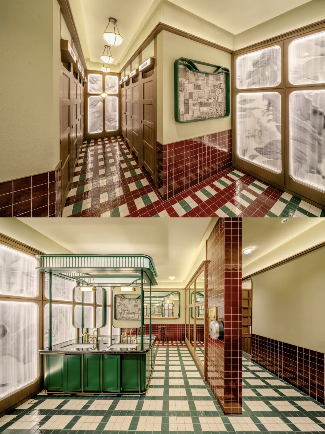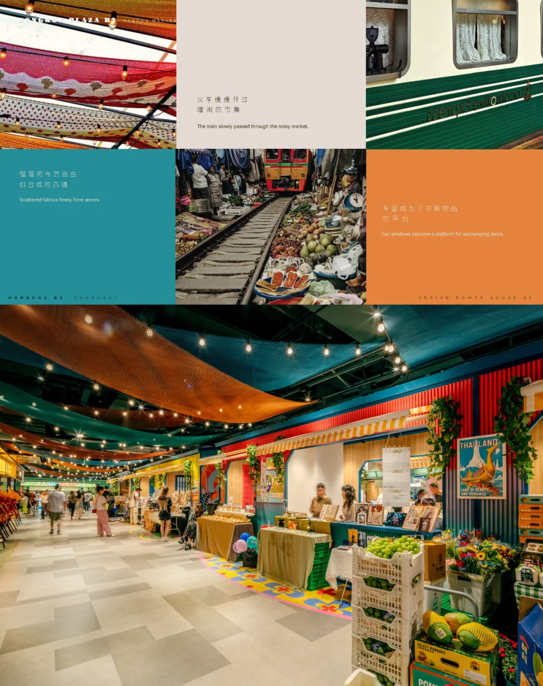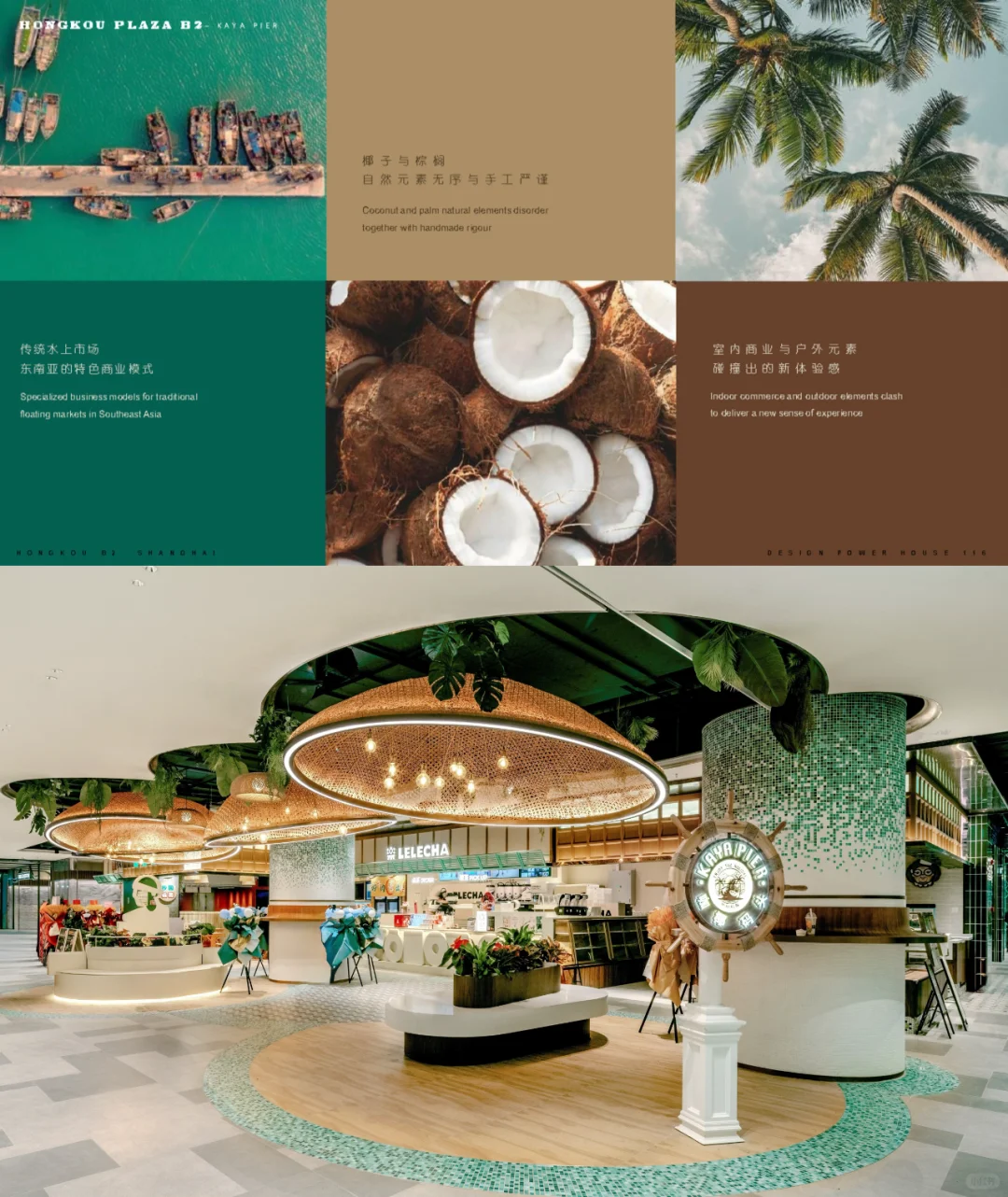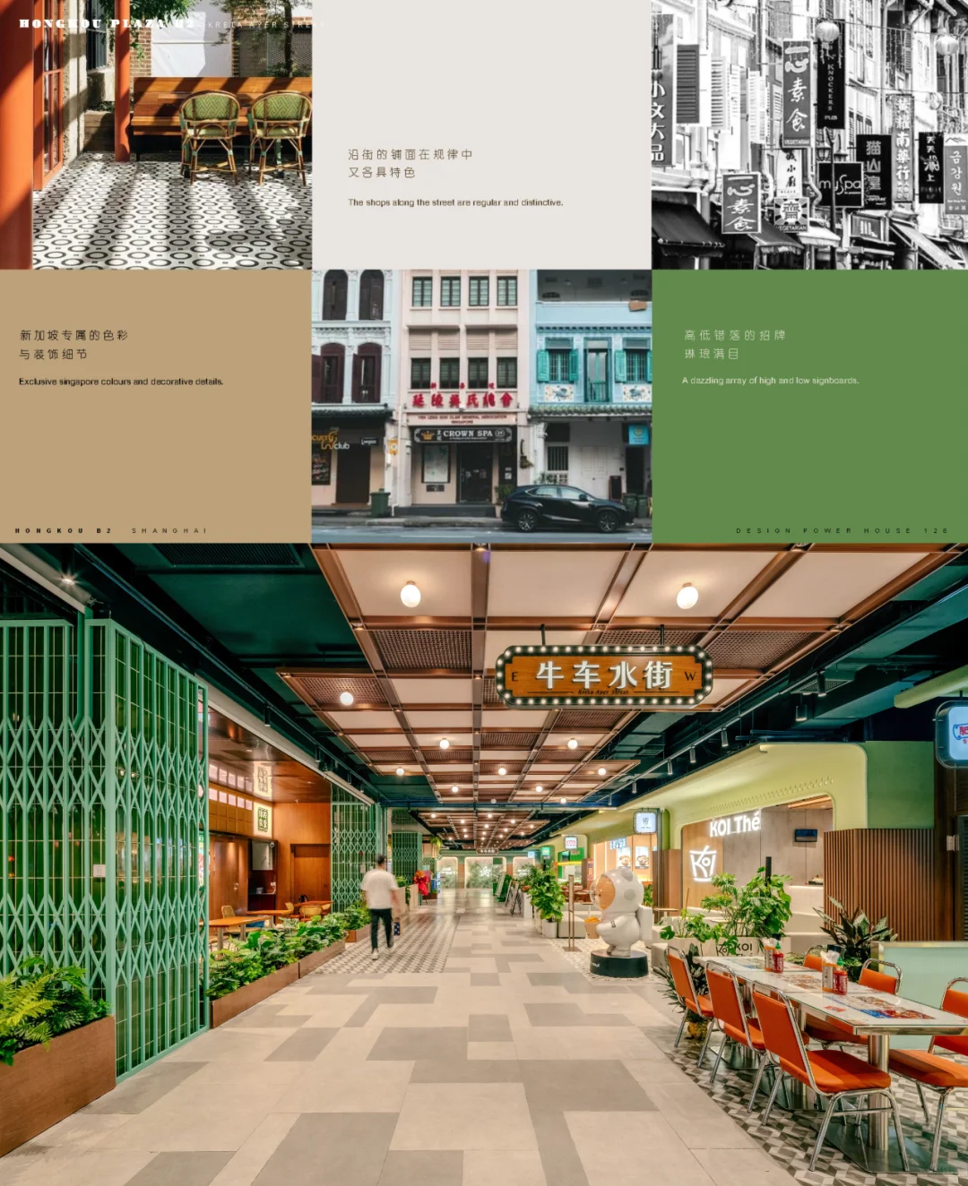 🟩 由DPH设计事务所打造的6600㎡南洋美食街STAR GOURMET,位于上海凯德虹口商业中心B2层。以南洋娘惹的文化记忆为起点,以火车作为串联整个故事线的载体,引领食客穿梭于槟城车站、牛车水街、南国花园、斑斓叶市、咖椰码头及芭乐邮局等各个主题打卡点。 🟩 这里有充满浪漫气息的绿⾊花园,有采用东南亚城市专属色彩与装饰元素的街道,也有还原椰林和棕榈风貌的自然风格,让人仿佛置身于南洋的异国风情之中。