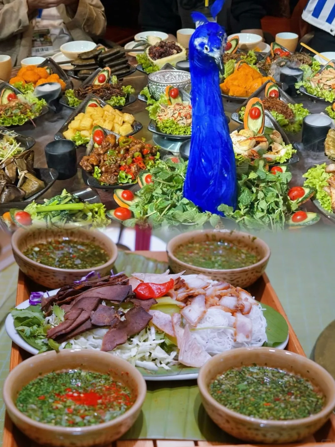🫅傣族宴:以傣族为特色的宴席,不仅拥有独特的傣族风情建筑,还有热情的傣族歌声助兴,也是颇具特色