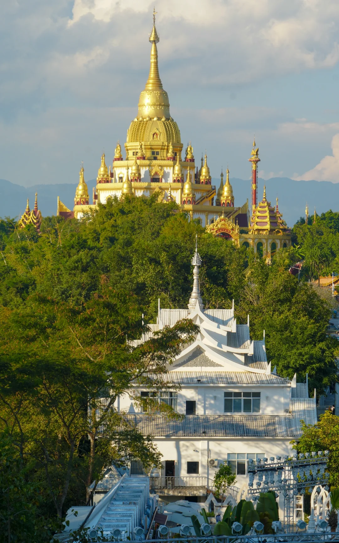 走进银塔景区,纯白的建筑让人觉得宁静,与对面的大金塔形成了鲜明的对比,除了是供奉了2000多座佛像的佛教圣地之外,勐焕银塔还是著名的网红打卡地,主塔旁边的天空之镜与山下的水池旁都是不错的拍照打卡点
