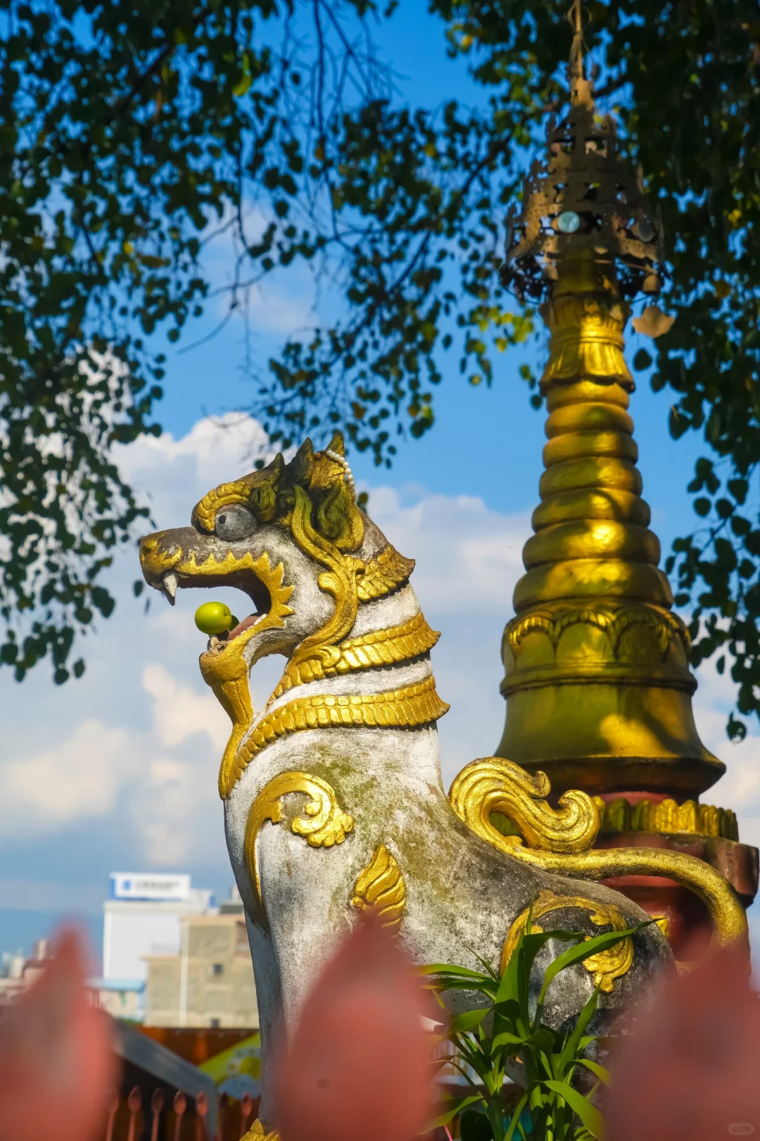 这并非是一座单纯的佛塔,而是在塔体之上生长着一棵菩提树,盘根错节的古树已经将塔体大部分包裹,因此也有着“树包塔”之称,据说顺时针绕塔三圈能招来财运