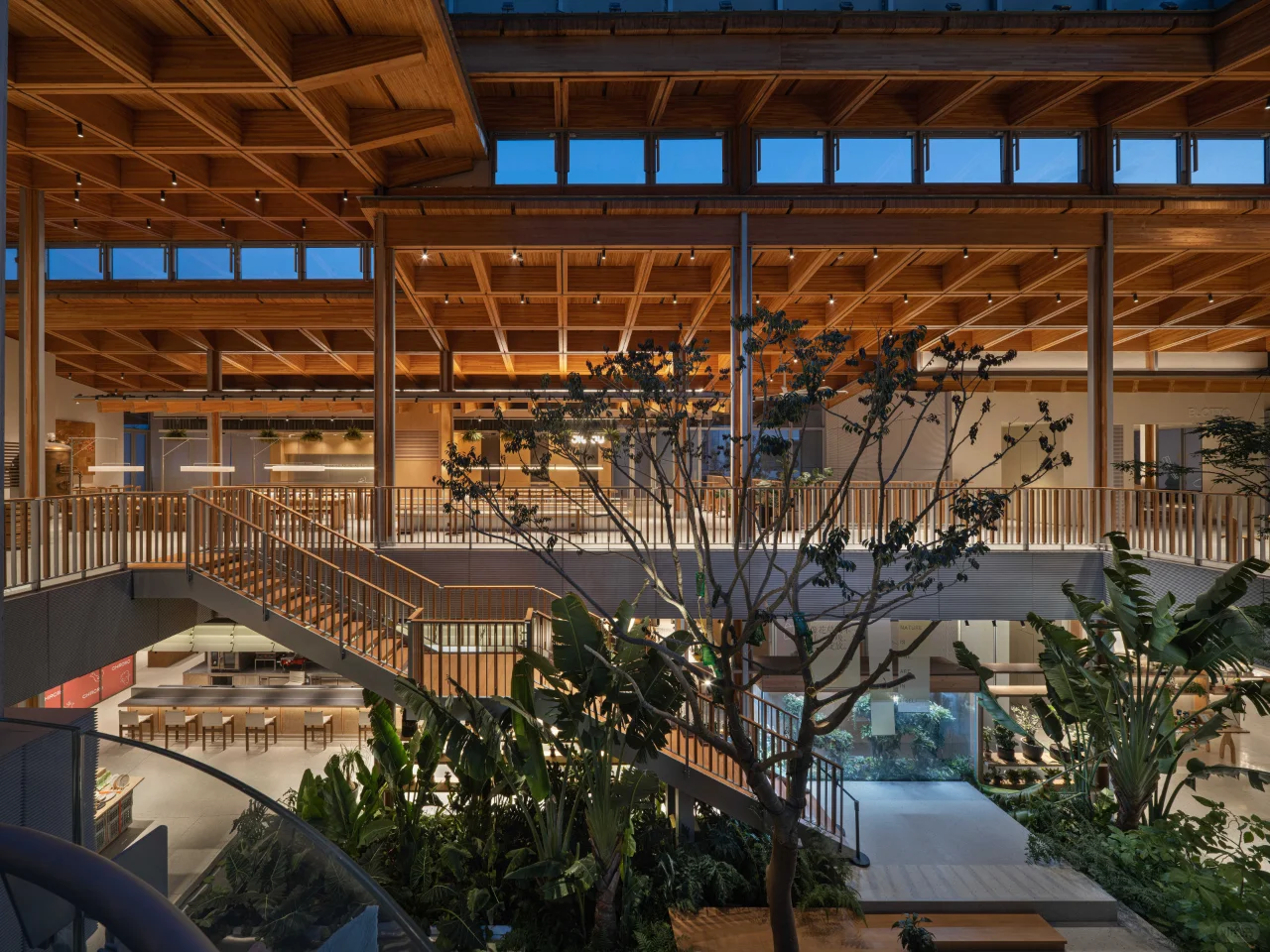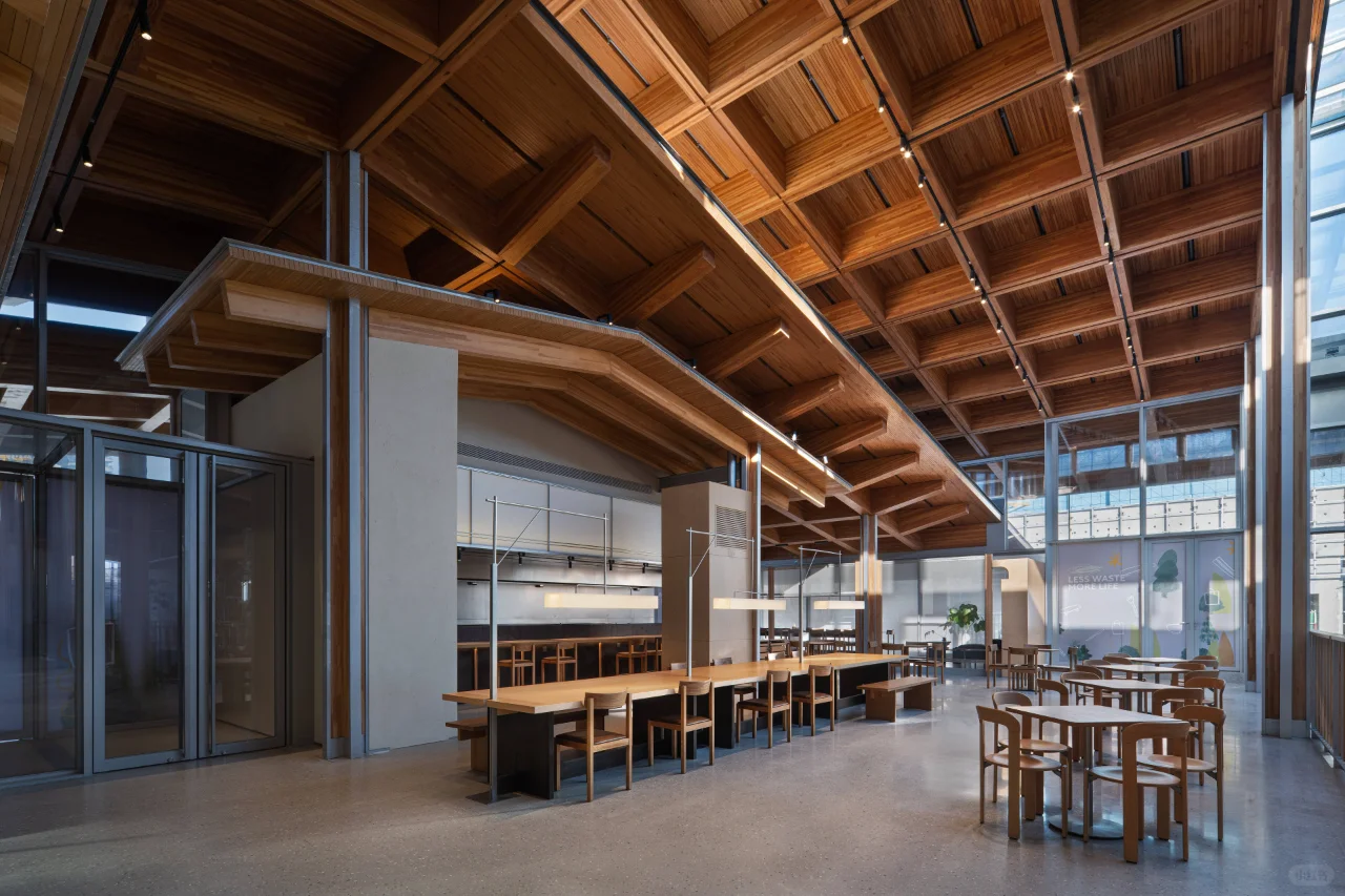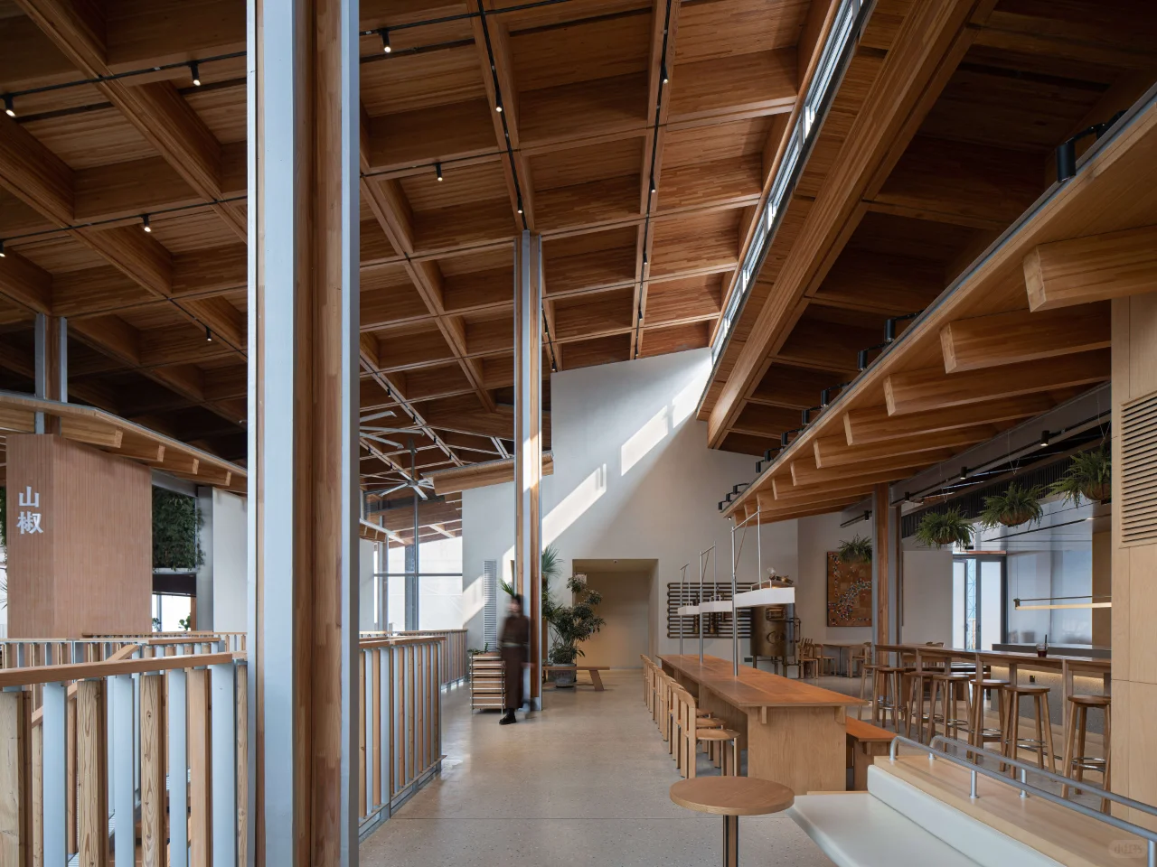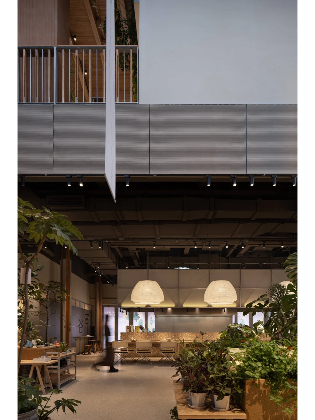 超级平常首先考虑的是融合共生的业态规划。一层定义为“食物市集”,让餐饮场景与市集场景融合,与内外景观充分互动,优化店面的灵活度与多样性,扩大外摆空间。