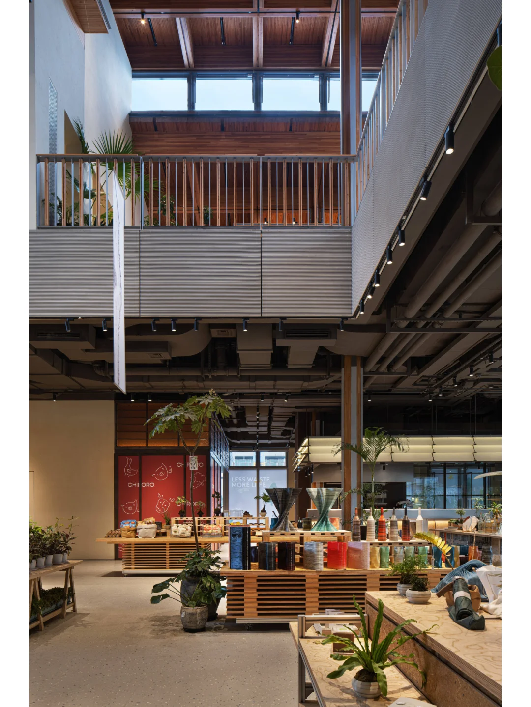 春熙集,用“食物的幸福链接“为线,串起社区与市集。作为理想之地社区计划的一部分,超级平常希望春熙集的室内设计可以充分回应大盘的核心价值观:智慧、低碳、活力。