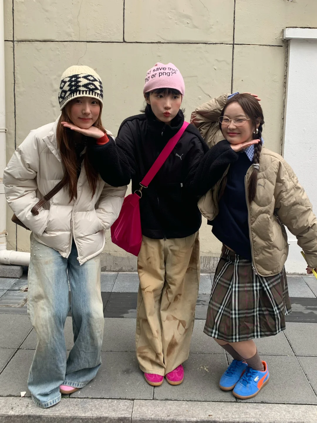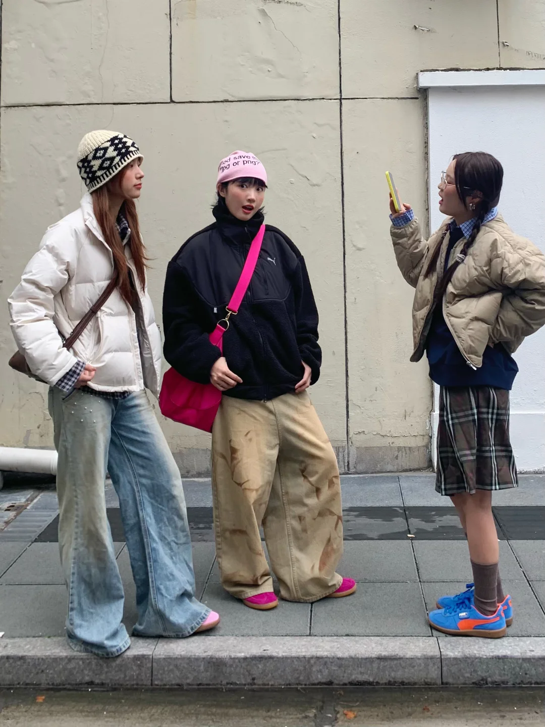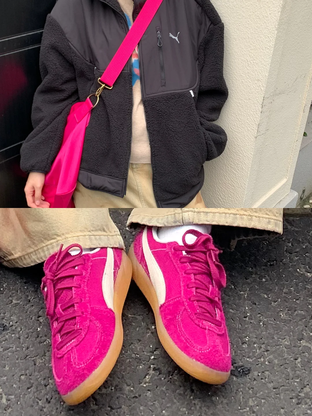 真是好久没有三个人一起出来玩了!就在上海路边走走也挺有意思的 女孩们在一起总有说不完的故事哈哈哈哈!最近上海也步入了秋天今天的天气也是阴天夹杂着一点小雨🌧所以还是有点冷!我们仨今天的ootd还都是蛮呼应的嘛 不约而同都穿上了puma彩色的德训鞋寒冷的季节必须要有点颜色才亮眼🩵我的ootd上衣是puma黑色宽松的摇粒绒外套 搭配的包包也是和鞋子有呼应的有木有!今天太开心了🥳拍了超多美美照片!