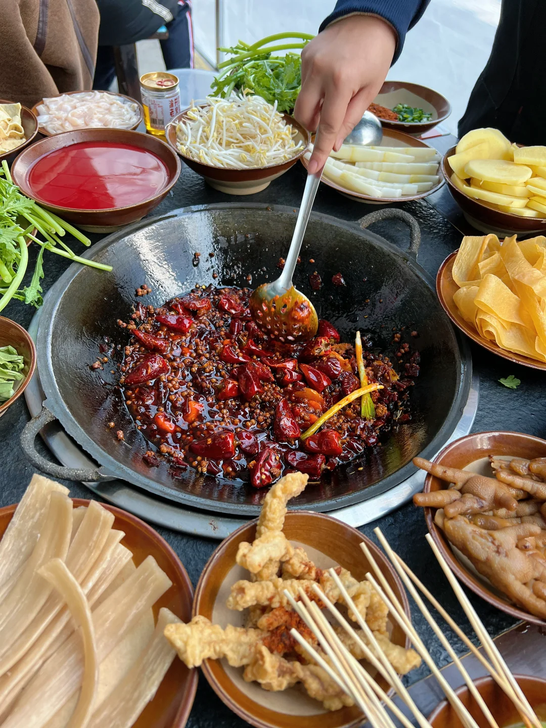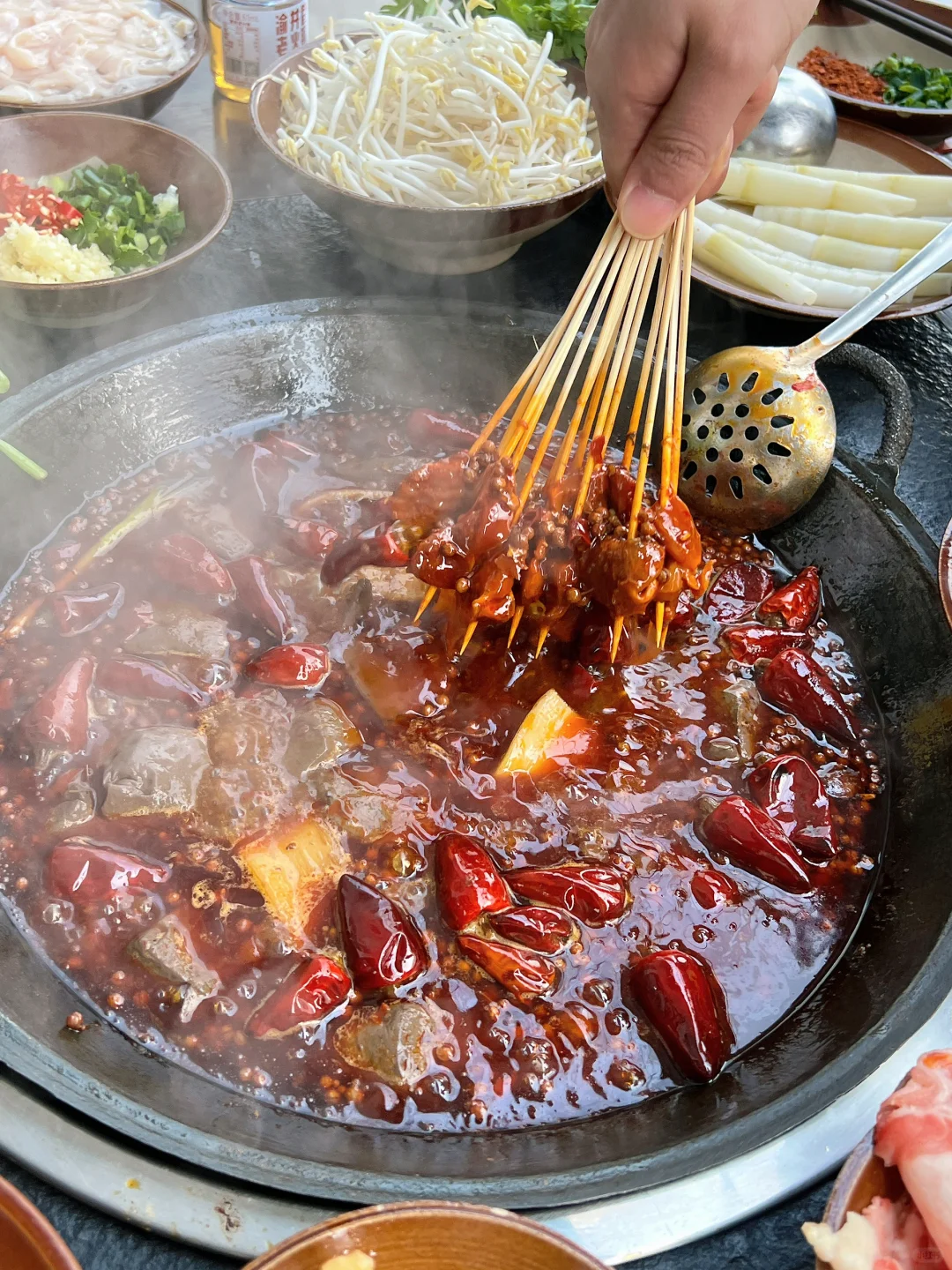 纯牛油➕辣椒花椒现炒的锅底,涮菜吃真的巨巨巨香!吃完打包锅底还返10💰!!