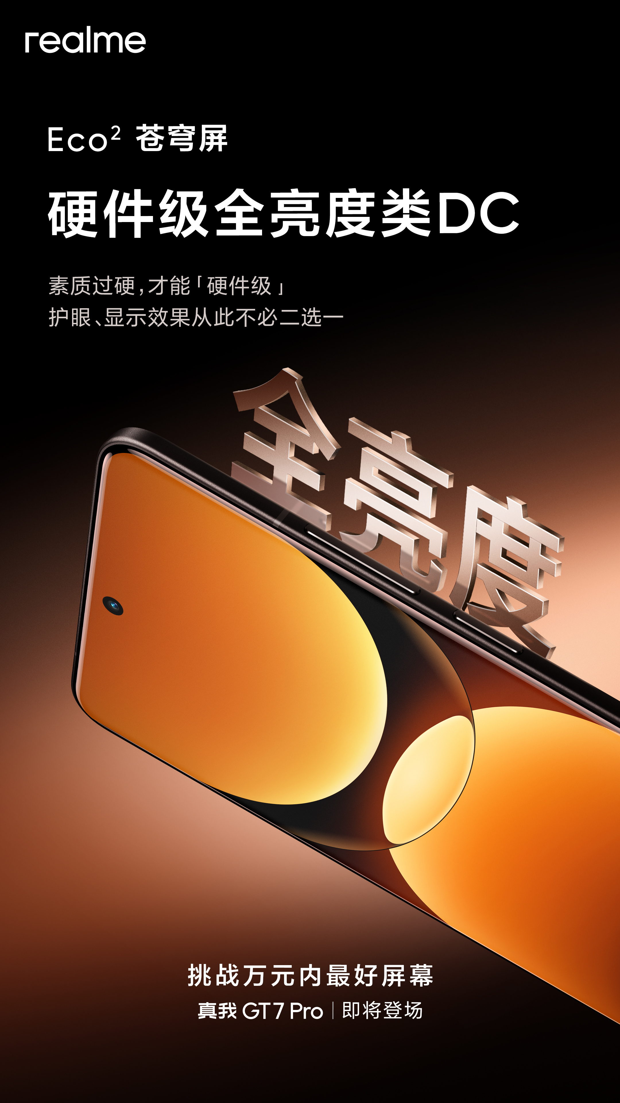 真我的万元内好屏揭晓了,Eco²苍穹屏。三星等深四微曲,硬件级全亮度类DC……卷屏幕还得看真我。