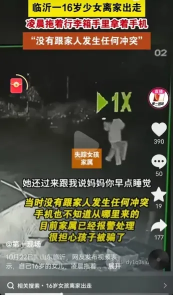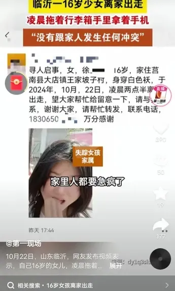 揪心,10月22日,一名母亲发视频称,自己16岁的女儿,在淩晨拖着行李箱离家出走