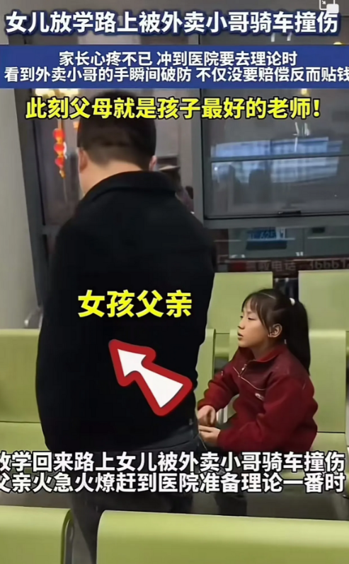 太暖心了!陕西宝鸡,8 岁女儿放学路上被外卖小哥骑车撞伤,父母知道后心疼不已,冲到医院想要理论一番!不料,看到外卖小哥的手瞬间破防,不仅没有赔偿,反而贴钱!网友:此刻,父母就是孩子最好的老师!
