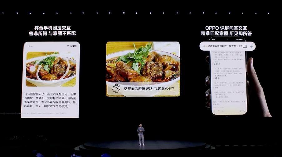 #OPPO发布会#OPPO对AI在手机上的体验理解还是很深刻的,要更符合直觉一些,一键问屏问啥都行……发布会现场展示询问图片牛肉面怎么做的确实很厉害,AI识别到屏幕内容,并且清楚的了解用户的意图,还有直接识屏获知位置信息进行导航等,太符合人们的交互直觉了,这也是AI未来发展最具想象力的地方。