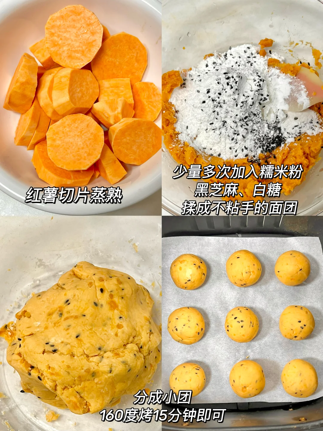 糯叽叽的黑芝麻红薯球谁还没学会!