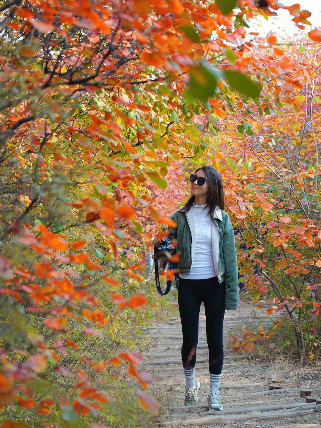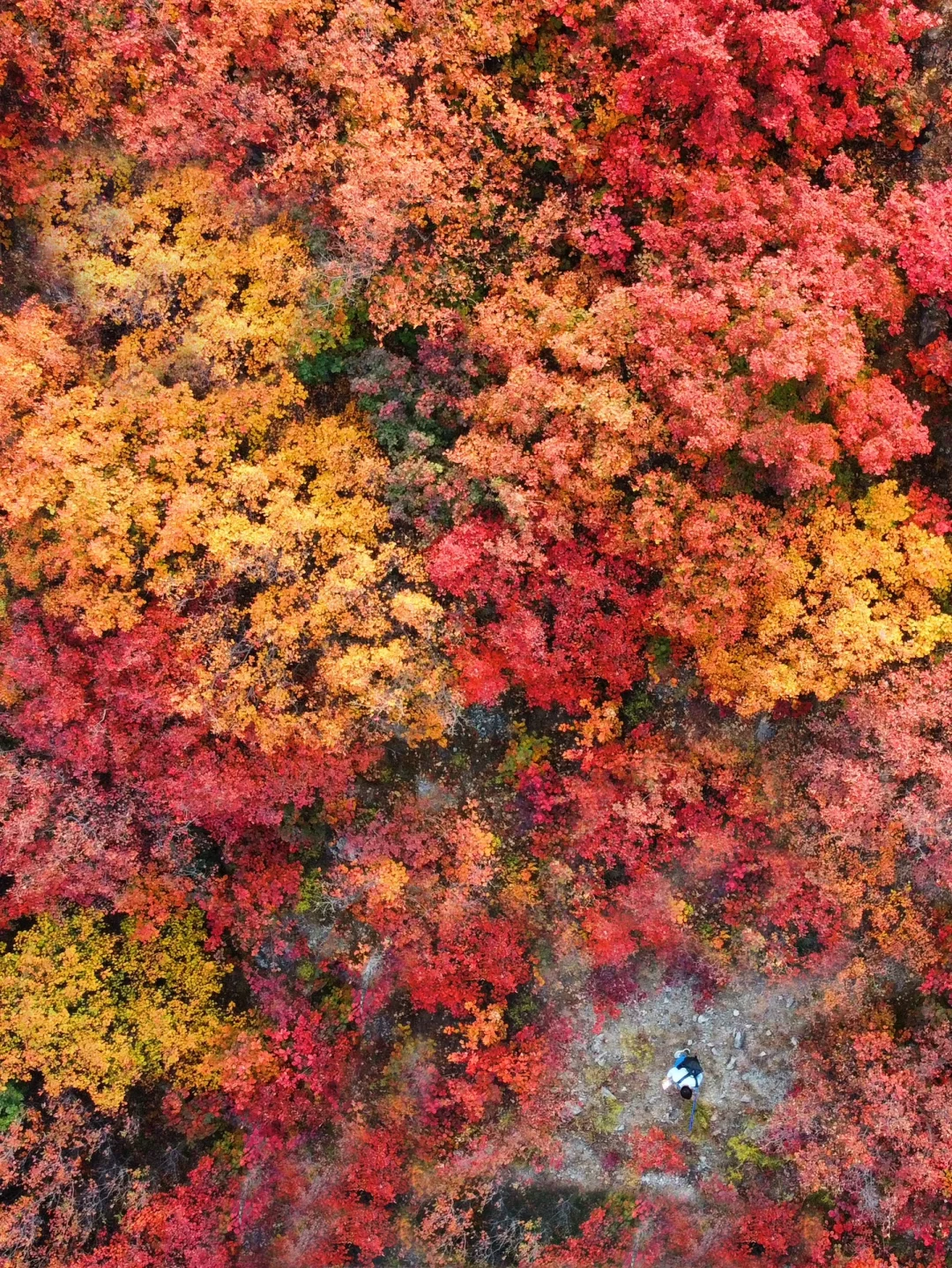 ❤沿着中龙驿站的木栈道上行,大约走十分钟,您将会遇到一个十字路口。向右转可以下山,也可以登高远眺。向左转将穿过枫林隧道,那里的红叶令人惊叹,给人以深刻的层次感