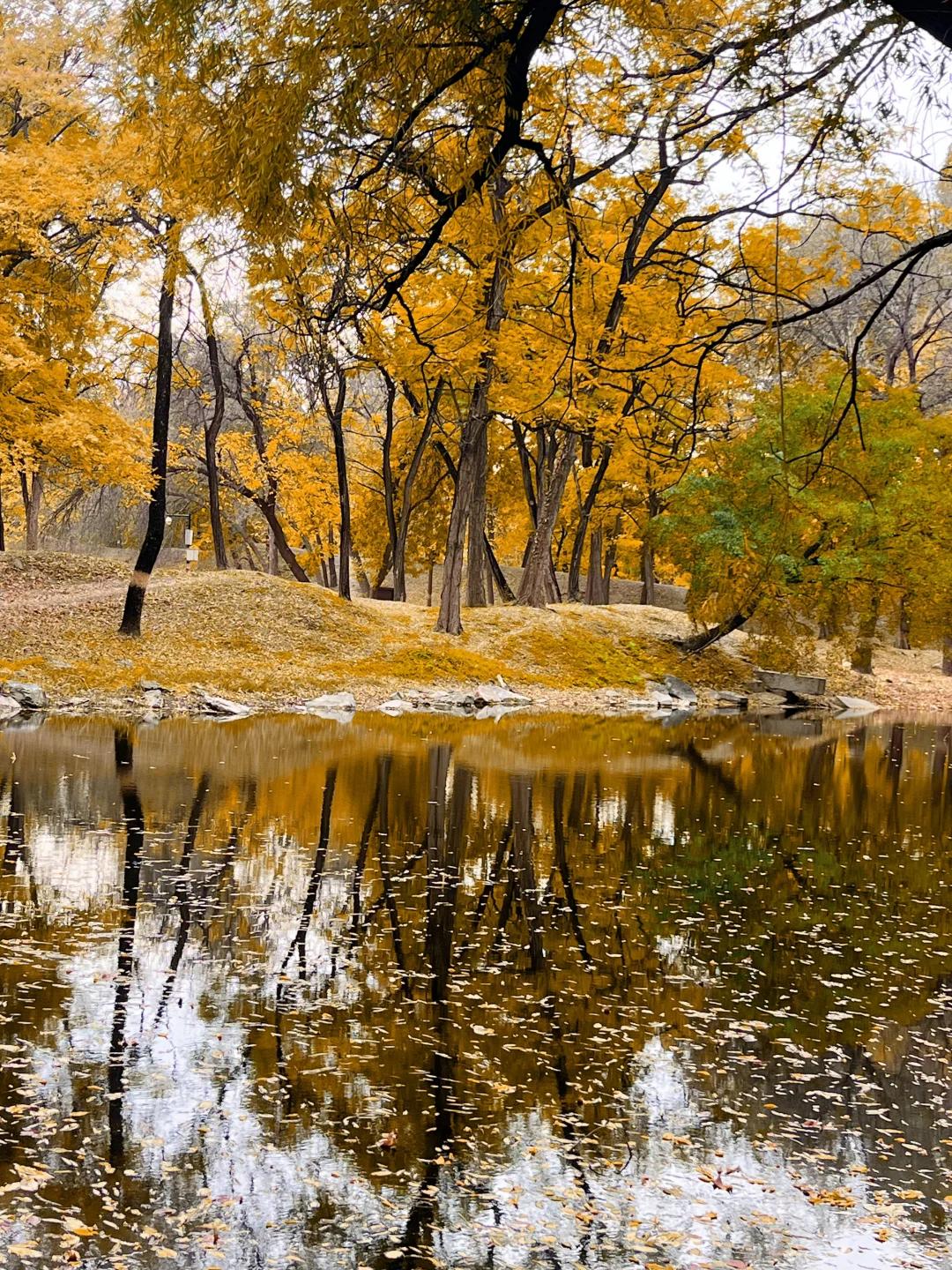 黄叶 河水 倒影 交相呼应 像是一卷油画