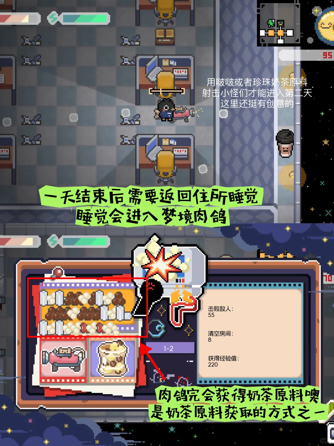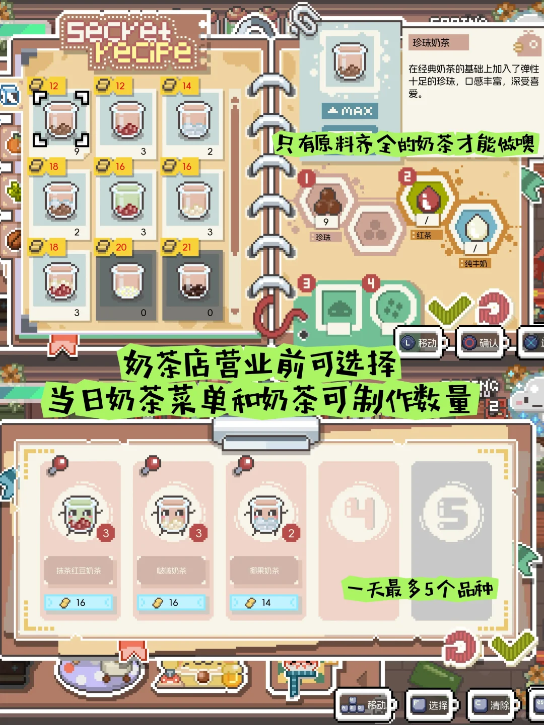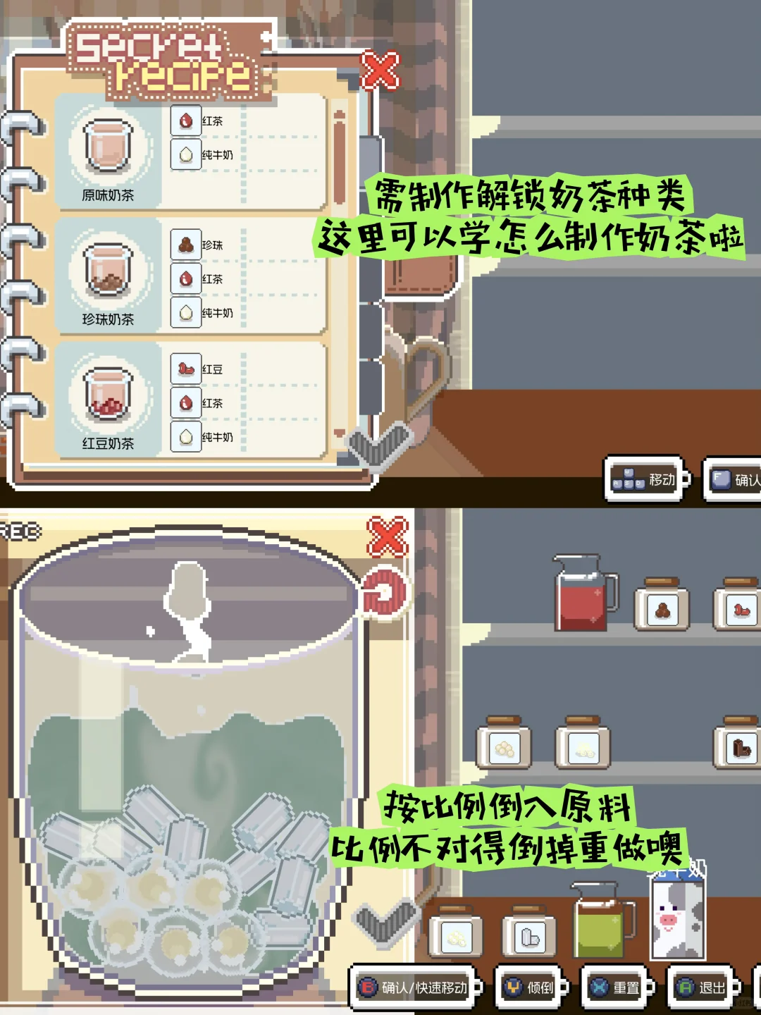 ⚠️这里就需要获取奶茶原料了,可通过睡觉肉鸽和种田获得~