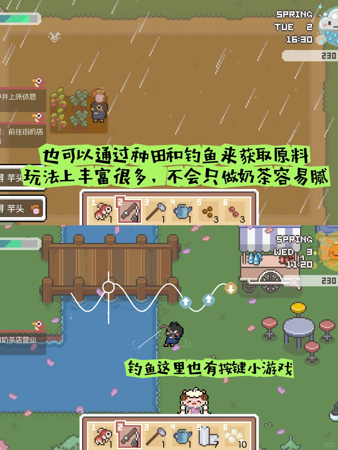 🐶可可爱爱的像素风奶茶模拟经营游戏,还融入了种田、钓鱼、和肉鸽玩法,🤔不知道硬控到了谁?!!