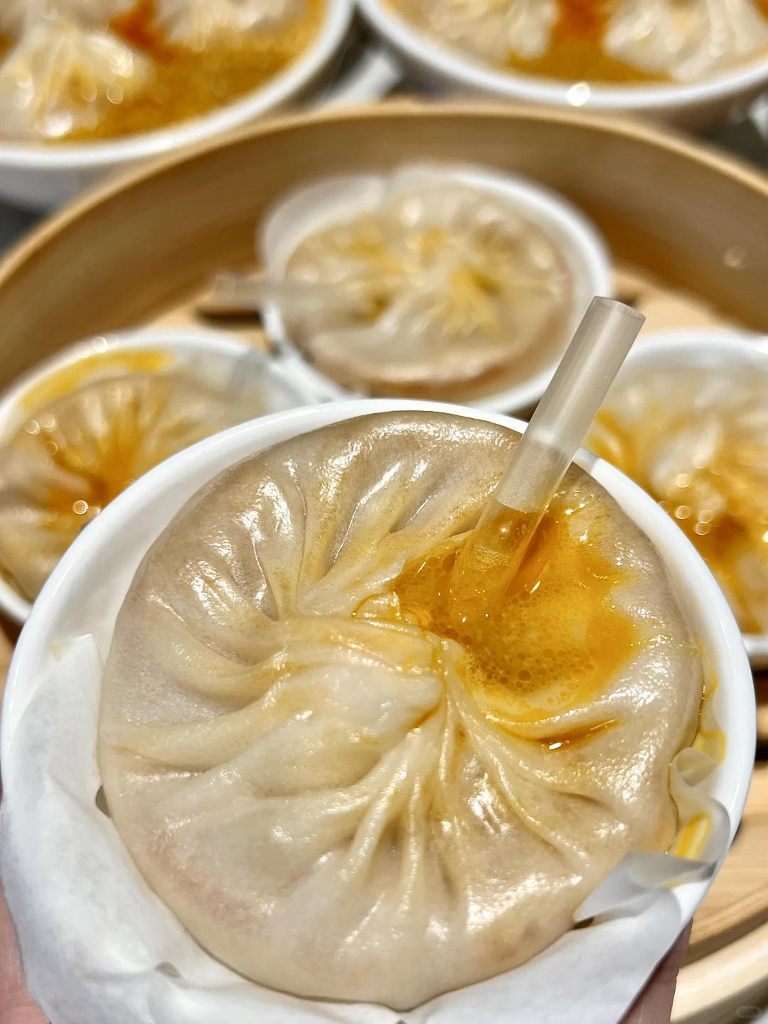 现包现蒸的蟹粉小笼包 开盖冒着了热气