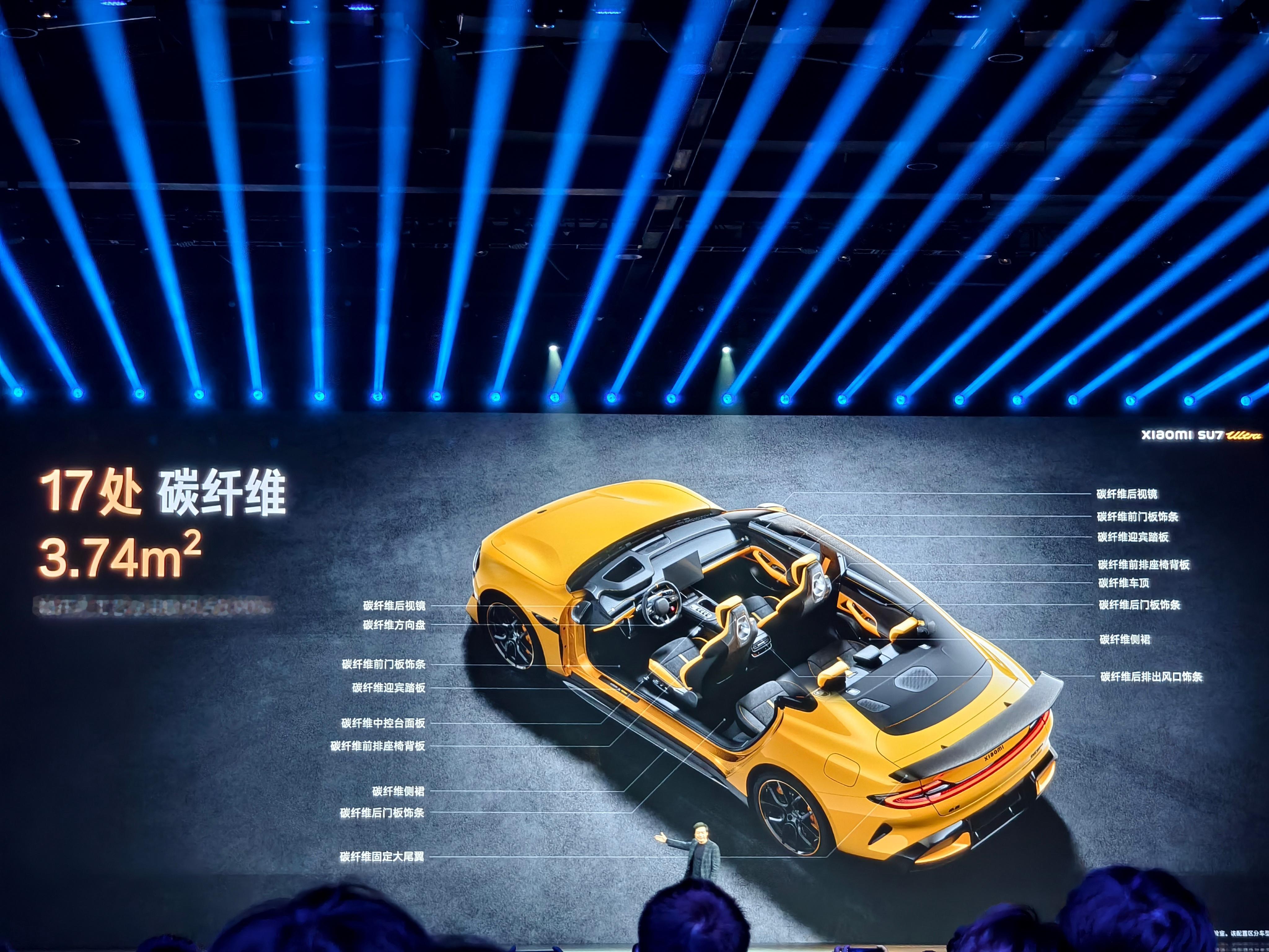 #小米SU7 Ultra#太强了,地表量产最快四门车,千万级超跑的动力系统。车身上用料也很豪华,处处可见碳纤维,基本还原了跑纽北那辆原型车的东西,可街可赛的西装暴徒啊。