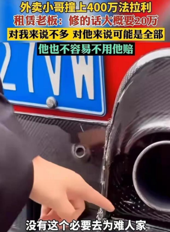 “活该他发财!”浙江,一外卖员在送餐时,为避免撞到孕妇,不慎撞向一旁价值400万的法拉利,车主预估修车费需要20万,他见外卖员站在原地手足无措,顿时明白外卖员也赔不起,谁料,车主接下来的行为实在太暖心! 李金华骑车驶入一条街道时,突然发现前方有一位孕妇推着小推车缓缓前行。眼看她还在斑马线附近,李金华的心顿时紧张起来。 他心中一急,迅速打了个方向,试图避免撞到孕妇,但直接撞上了一辆停在路边的红色法拉利。 李金华跌倒在地,一时间头昏目眩,耳边似乎只能听到自己的心跳声。路人议论着,“这车要几百万啊……”李金华听到这些话,心情顿时沉重如山。 这辆法拉利的车主王先生不久后匆匆赶到现场,他看到车尾的凹痕,眼神里透出一丝无奈和疲惫。作为一位年轻的企业家,王先生对车有着几分执着,这辆法拉利是他工作多年后自己购买的第一辆车。 看着李金华捂着肘部,显然受了一些轻伤,脸色苍白,满脸歉意,手足无措地低头站在法拉利旁边。王先生赶紧上前细细观察了李金华的状况,询问是否需要就医。 李金华连连摆手,支支吾吾地道歉。 围观的人越聚越多,有的路人小声讨论着李金华的处境,感叹外卖员的不易,还有的则惋惜这辆名贵跑车的车尾损伤。 一位年轻女子小声说道,“外卖员每天这样跑,生活肯定不容易,真是倒霉啊……”但也有人低语,“这么好的车,修起来可是天价,他这下真是摊上大事了。” 这样的议论声四起,仿佛在李金华的耳边一遍遍地敲打着,令他愈发感到无地自容。 王先生心里明白,这样的事故对于外卖员来说无疑是一场灾难,尤其是涉及20万左右的维修费用,足以让李金华一时半会儿难以翻身。 王先生的心态从最初的无奈逐渐变得复杂,他意识到,不管是车还是钱,对于自己来说只是生活的一部分,但对于李金华,这场事故可能是生活的全部。 一念至此,王先生当场告诉李金华,他会承担车子的维修费用,不让他赔偿任何损失。 这一决定让周围人感到意外,一些围观群众甚至发出低声的赞叹,窃窃私语称赞车主的宽容大度。 李金华愣住了,他的脑海中一度充满了对未来的恐惧,修车费的天文数字让他感到窒息,可此时这一切仿佛都被拂去了,王先生的决定让他的负担在一瞬间消失得无影无踪。 李金华几次想要开口感谢,但所有的话语到了嘴边,却又哽在喉头。 几天后,王先生主动联系了李金华,并且表达了一个意外的提议:公司正好缺少一个勤奋可靠的后勤人员,他希望李金华可以加入他的公司,作为一名正式员工,获得一份更稳定的收入。 这一提议对于李金华而言无异于雪中送炭,在他的生活中打开了一扇新的大门。他一边表达感谢,一边迅速接受了这个提议,因为他知道这是一次难得的机会,不仅是对他的工作,也意味着一种全新的生活可能。 王先生的善意在网络上传开,许多网友在知晓这一故事后,纷纷为他的宽容和体谅点赞,有人感叹“活该有福报”,也有人称赞他的慷慨大度。 甚至有人戏称,“这位车主的心态和车价一样豪华。” 也有网友对外卖员表达了理解,认为生活的不易让许多外卖员不得不在时间上步步紧逼,匆忙之间难免发生意外。 事故已经过去,但人们的记忆和感慨仍在延续,有人开始思考,在快速发展的现代都市里,人与人之间的关系应当如何才能更加温暖与宽容。 【信息来源:太原广播电视报】