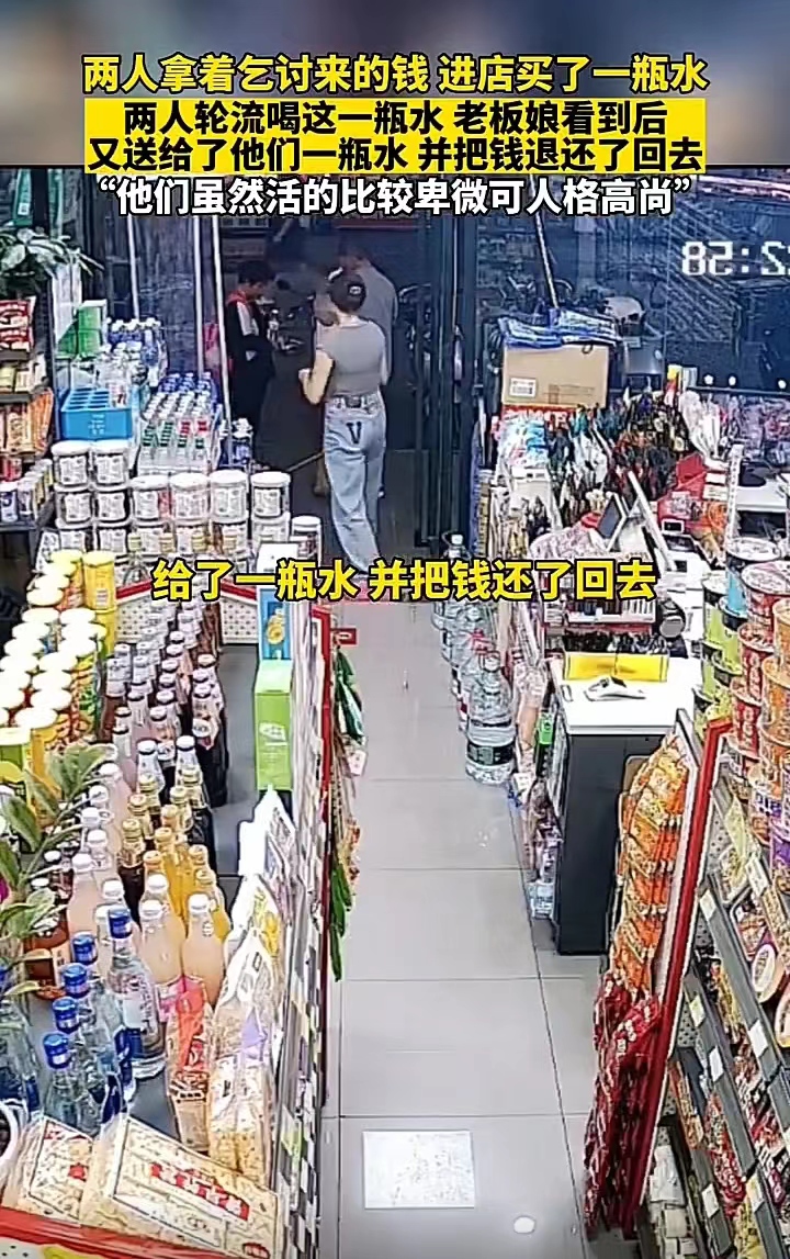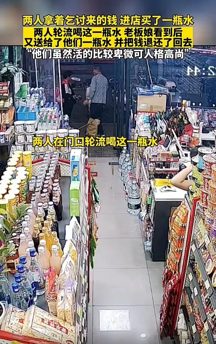 看到这位老板娘对这对身有不便的夫妻所做的一系列举动,真的令人感到温暖。这对夫妻虽然日子过得比较卑微,但并没有让老板娘施舍,而是用乞讨的钱购买,可见他们依然存着高尚的品德,而老板娘能够同情他们,赠水的同时还把钱归还,也证明她内心的真善美。大家怎么看呢?