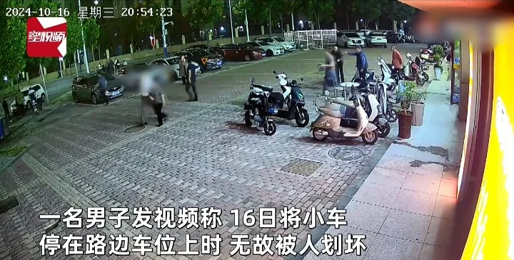 10月29日,安徽阜阳一名男子发视频称,自己将车停在路边时,无故被人刮坏,之后他调取监控,发现是两名老人做的,当时他们手牵着手路过,其中一个老人便拿出尖锐物品,对着车身一路划过去。