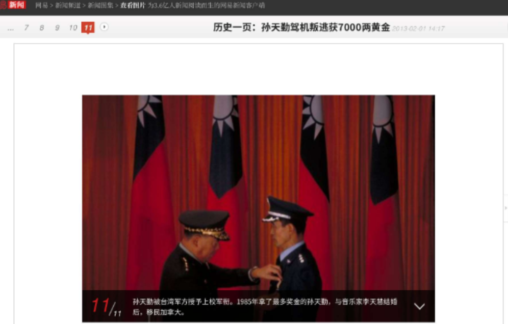 网易新闻在2013-02-01《历史一页:孙天勤驾机叛逃获7000两黄金》的报道