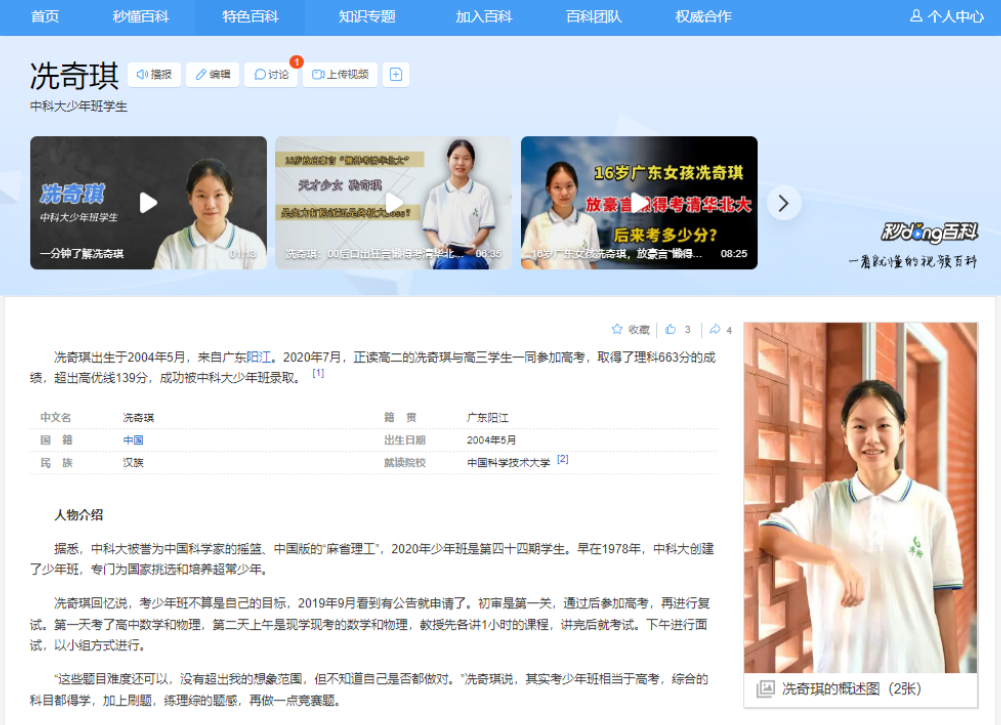 高考成绩出炉,大家都在为上清华北大挤破头,可广东有个女孩却说"懒得考清华和北大",这话一出,网上炸锅了! 有人说她狂妄自大,有人说她哗众取宠,可谁能想到,这个16岁的"数学天才"竟然真有这个底气? 她的选择不仅让人大跌眼镜,更是给我们上了一堂生动的人生课,"懒得考清华和北大",这句话像一颗重磅炸弹,在网上掀起轩然大波。 说这话的不是别人,正是来自广东的16岁女孩冼奇琪,别以为她是在吹牛,人家可是实打实的学霸! 高考成绩一出炉,663分!这分数在广东可不是闹着玩的,可是,明明有实力冲击清华北大,为啥说"懒得考"呢? 因为她的真正目标是更具挑战性的中国科学技术大学少年班,回想起两年前那句引发争议的话,当时网上吵得鸡飞狗跳,可人家早就埋头苦读,为自己的梦想默默努力了。 最终她以663分的高考成绩,成功入选中科大少年班,要知道,广东省就那么两个宝贵的名额啊! 简直是在学霸如云的广东省杀出了一条血路,但冼奇琪的故事并没有就此结束。 2024年5月,她又获得了中科大第43届郭沫若奖学金,这可是中科大本科生的最高荣誉奖学金,全校就35个名额。 从争议到实力,冼奇琪用实际行动证明了自己的实力,父母都是教师,从小就在充满知识气息的环境中长大,但是别以为冼奇琪的父母是那种"虎爸虎妈"。 恰恰相反,他们给了冼奇琪一个轻松自在的童年,没有早教班,没有各种兴趣班,只有满屋子的书和沉浸在阅读中的父母。 就这样,小小的冼奇琪在耳濡目染中爱上了学习,特别是数学,冼奇琪的数学天赋简直是开了挂。 小学时期她就已经在各种奥数比赛中大显身手,拿奖拿到手软,进入初中后,她更是以优异的成绩考入了华南师范大学附属中学的奥数班。 高中时期的冼奇琪更是如鱼得水,不仅成绩稳居班级前列,还在2019年获得了全国高中数学联赛省级一等奖。 冼奇琪的成功可不是靠运气,在备战少年班的过程中,她展现出了超乎寻常的毅力和智慧,她不仅要在两年内完成三年的高中课程,还要同时应对高考的压力。 这种一心多用的能力,简直是让人叹为观止,想象一下,当其他同学还在为一门课发愁的时候,冼奇琪已经在同时啃三四门课了。 这种学习状态简直就像是在玩多线程的游戏,而且每个线程都能得高分,冼奇琪的学习方法也是独树一帜。 她从来没有参加过任何学科补习班,每次开学一拿到练习册,她就开始自学课本内容,完成练习册。 然后留时间做自己的事情,比如拓展、竞赛等,中科大少年班,全国才招收48名学生,考试难度堪比登天! 面对这个几乎不可能完成的任务,冼奇琪却毫不畏惧,初试、复试、面试,再加上高考这四重关卡,最终成功入选。 现在的冼奇琪已经开始了她在中科大少年班的学习生活,想象一下,她可能正坐在图书馆里,埋头研究一道复杂的数学题。 或者她可能正和同样优秀的同学们讨论着最新的科技发展,这种画面简直就像是科幻电影里的场景,充满了无限的可能性。 冼奇琪的成功并非一蹴而就,从高中到大学,她一路披荆斩棘,收获了一个又一个荣誉,全国高中数学联赛省级一等奖、中科大少年班录取、郭沫若奖学金等等。 每一个荣誉背后,都凝聚着她的汗水和努力,在郭沫若奖学金颁奖典礼上,中科大校长包信和院士为获奖者颁奖并致辞。 他希望同学们在未来的征途中,以坚定的信念和不懈的努力,敢于攻坚克难,敢于创新创造,勇闯科技前沿科技创新的"深水区""无人区"。 "其实我也想过上高三考清华北大,但是就是懒,"这句话乍一听,似乎有点狂妄,但细想一下,这里的"懒"可不是真的懒,而是一种高效学习的艺术。 冼奇琪认为,学习不能完完全全跟着老师走,要有自己的计划,否则会非常疲惫,"被老师完全带着走有一种总是被拖拽的感觉,会出现很多情绪。 所以要把握自己的节奏,相信自己,寻找适合自己的学习方法,"这番话,道出了她成功的秘诀。 现在的冼奇琪,正站在人生的新起点上,在中科大这个被誉为中国科学家摇篮的地方,她将有更多的机会施展自己的才华。 面对更多的挑战和机遇,相信这位数学天才一定会继续发光发热,清华北大固然好,但并不是每个人的终极目标。 找到适合自己的道路,并为之奋斗才是最重要的,这种勇气和智慧,才是真正值得我们学习的地方,这个敢说"懒得考清华北大"的女孩,一定会创造出属于自己的精彩人生!