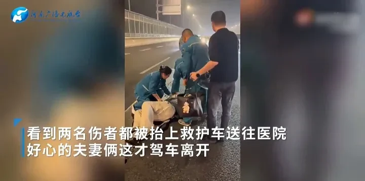 随着救护车快速赶来,医护人员也对伤者进行了救治,而那对夫妻眼看他们已经脱离了危险,将他们送上车后,两人才默默离开。