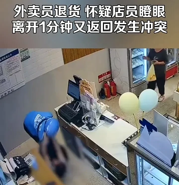 10月31日,广东佛山一名外卖员因买到有问题的面包,所以回面包店退货,之后他怀疑女店员一直在瞪他,于是怒气冲冲指着女店员质问,女店员辩解没有,双方一言不合发生冲突,事后女店员报警处理。