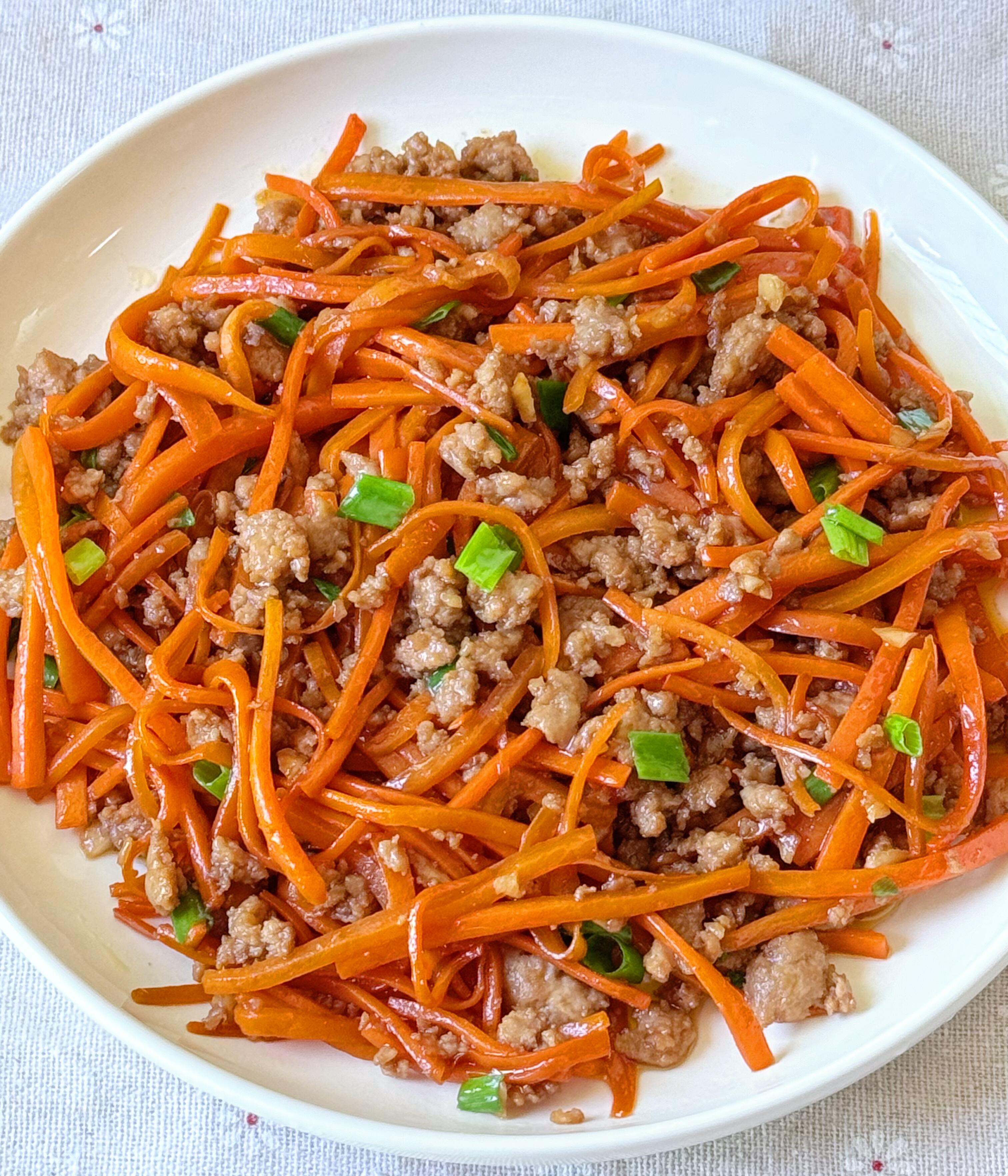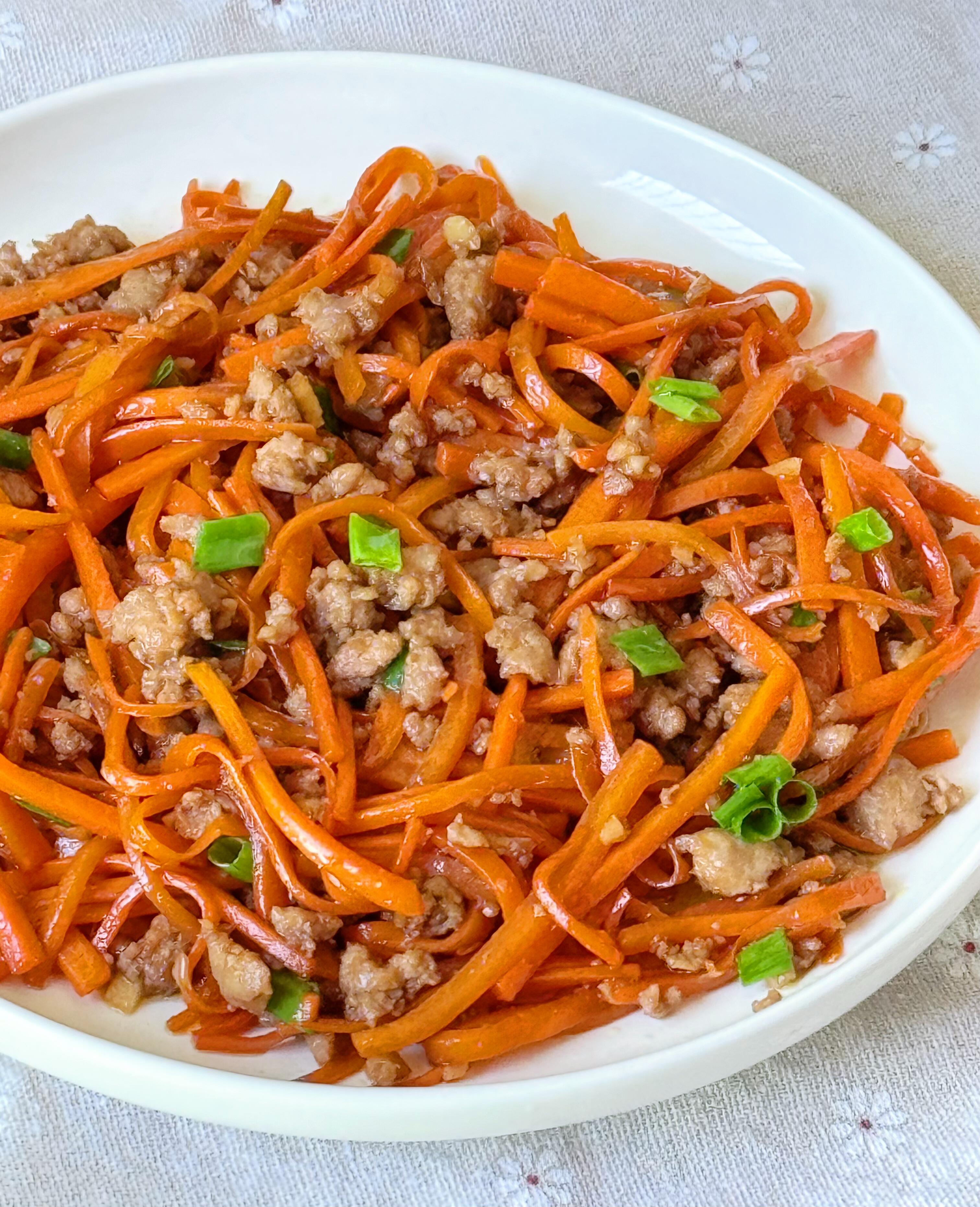 想起家里还有一些肉末,麻溜的就把这道菜安排起来了-胡萝卜炒肉末,超下饭,不要提多入味了,喜欢的朋友们也赶快行动起来吧~ 食材:胡萝卜、肉末、蒜、葱花 做法:请参考上面的图片教程哦