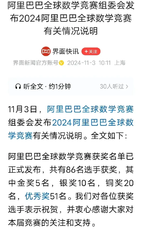阿里巴巴全球数学竞赛结果出炉,出人意料,在预赛时获得二等奖的姜萍,曾经被寄予厚望,结果最后出局。