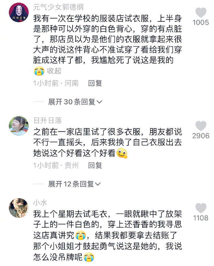 我也干过这事儿,我要试人家衣服,她一直拽跟我解释那是她衣服,我根本不信