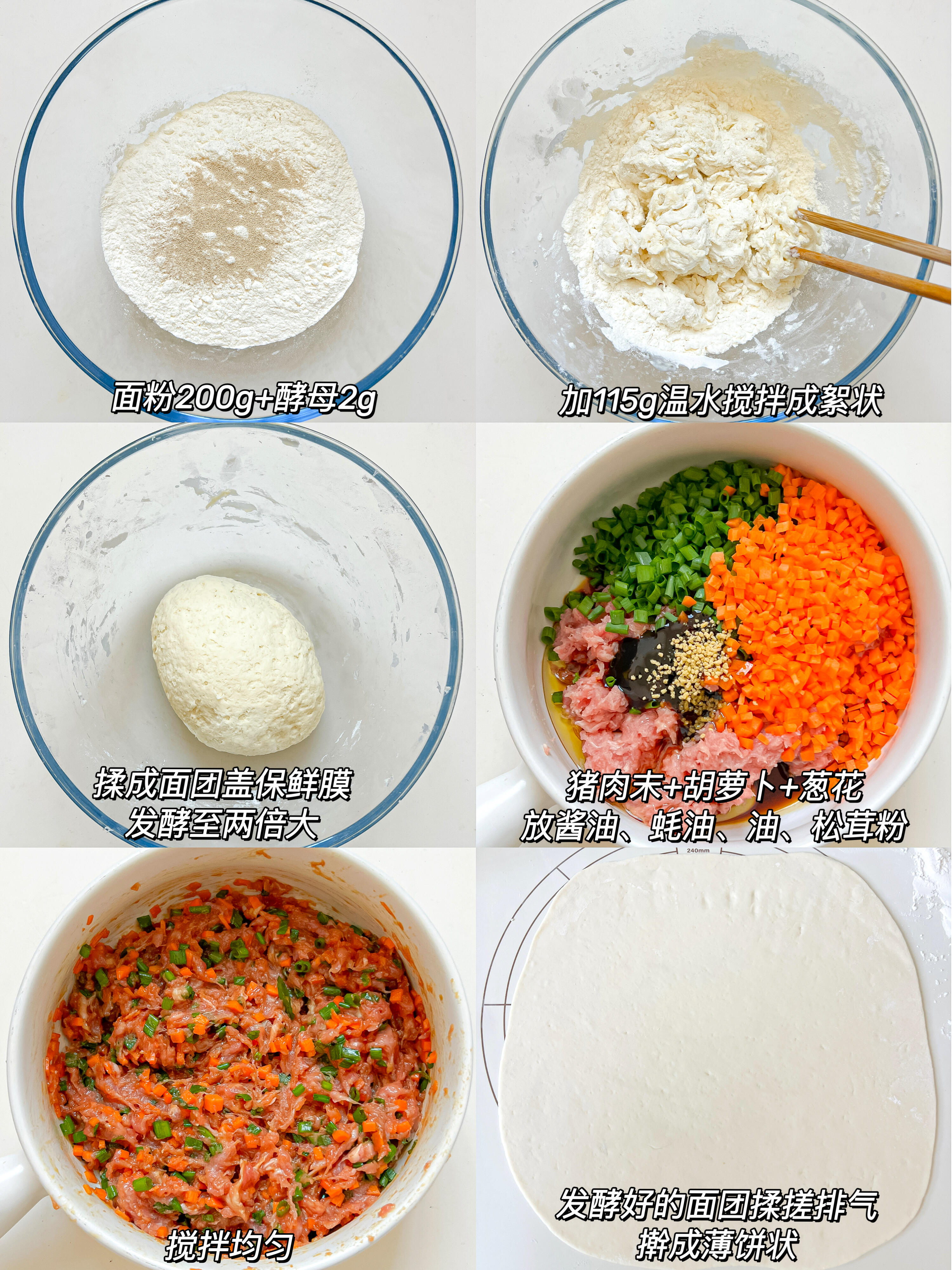 食材:猪肉馅120g、面粉200g、温水115g、酵母2g、葱花、胡萝卜 具体做法看图文教程! 猪肉也可以换成其它肉 可以多做点冷冻,吃的时候拿出来蒸一下就行