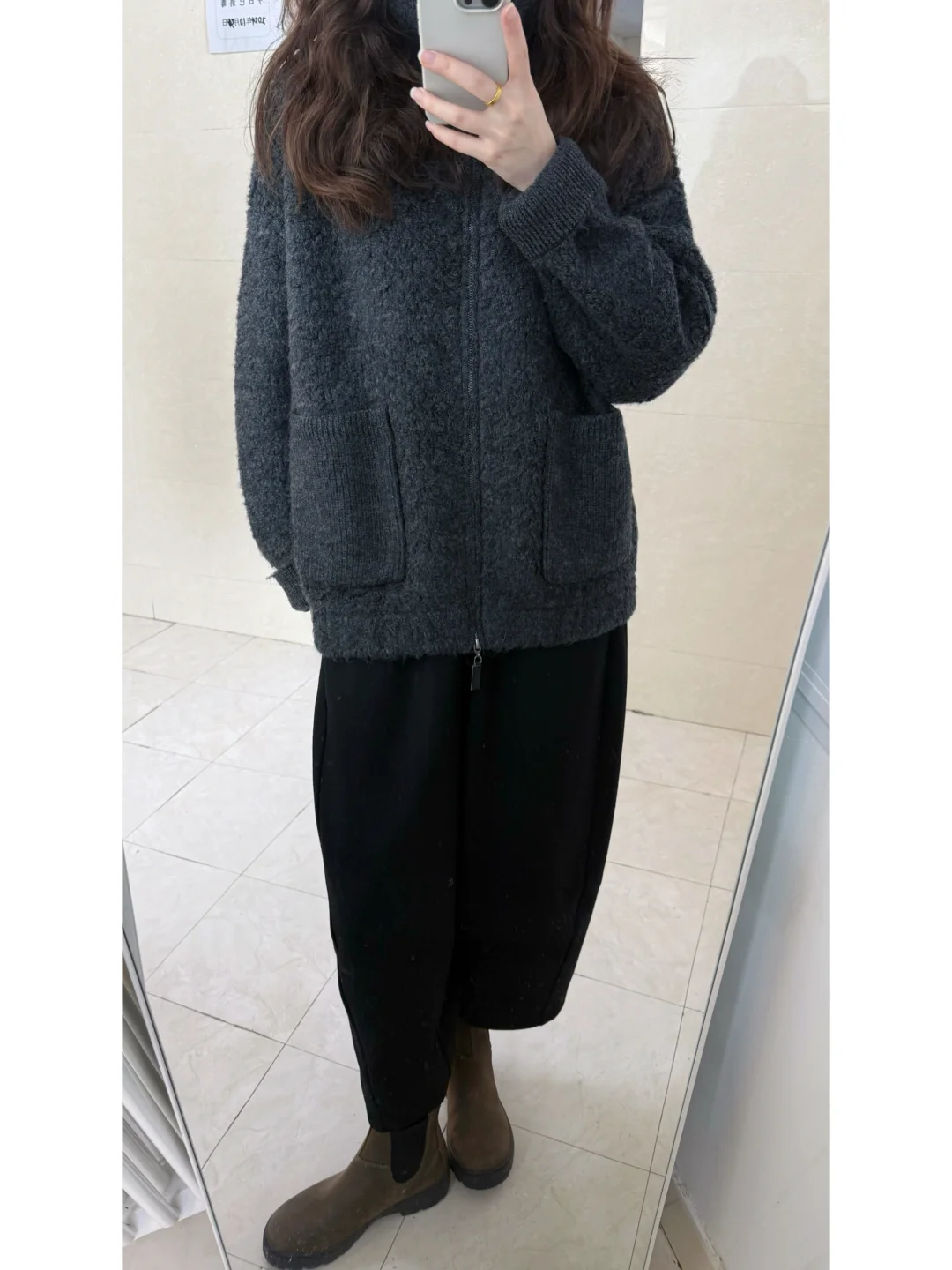 降温穿什么/灰色羊毛外套