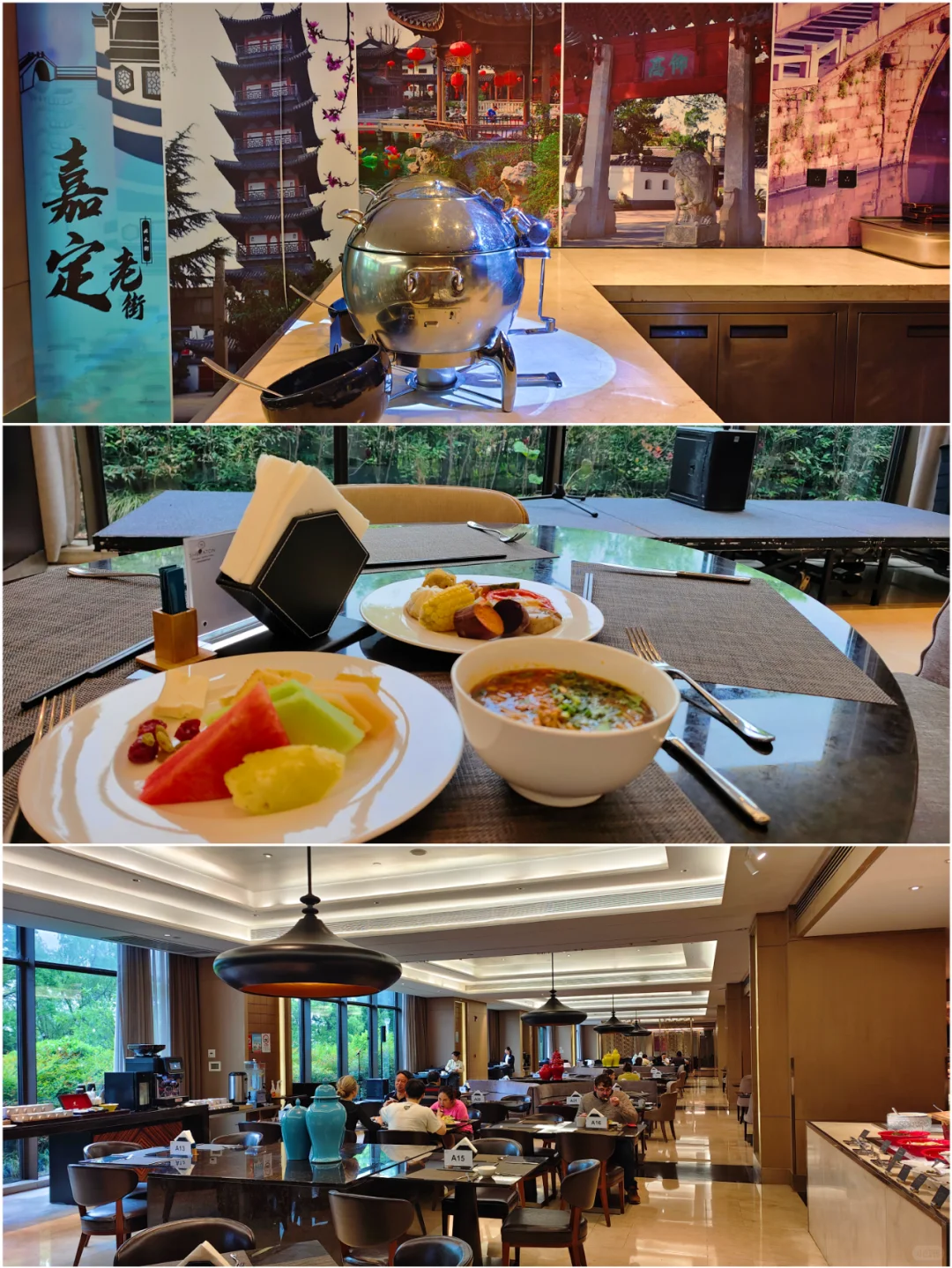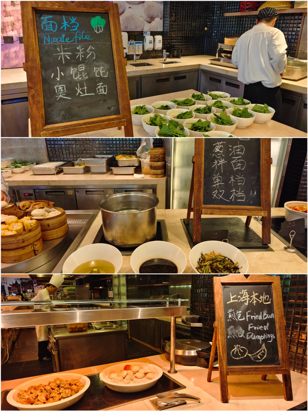 早餐在1楼的盛宴标枳餐厅,餐食还是比较丰富的,有奥灶面、葱油拌面、单档双档、煎饺、生煎等上海当地特色。 (P12~P13)。