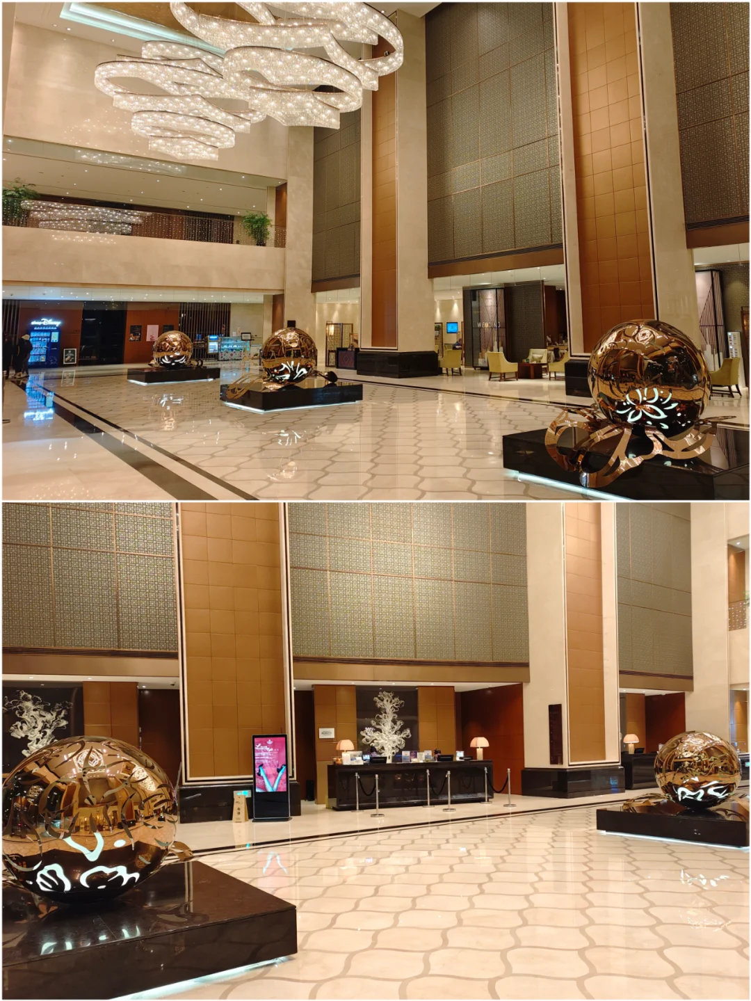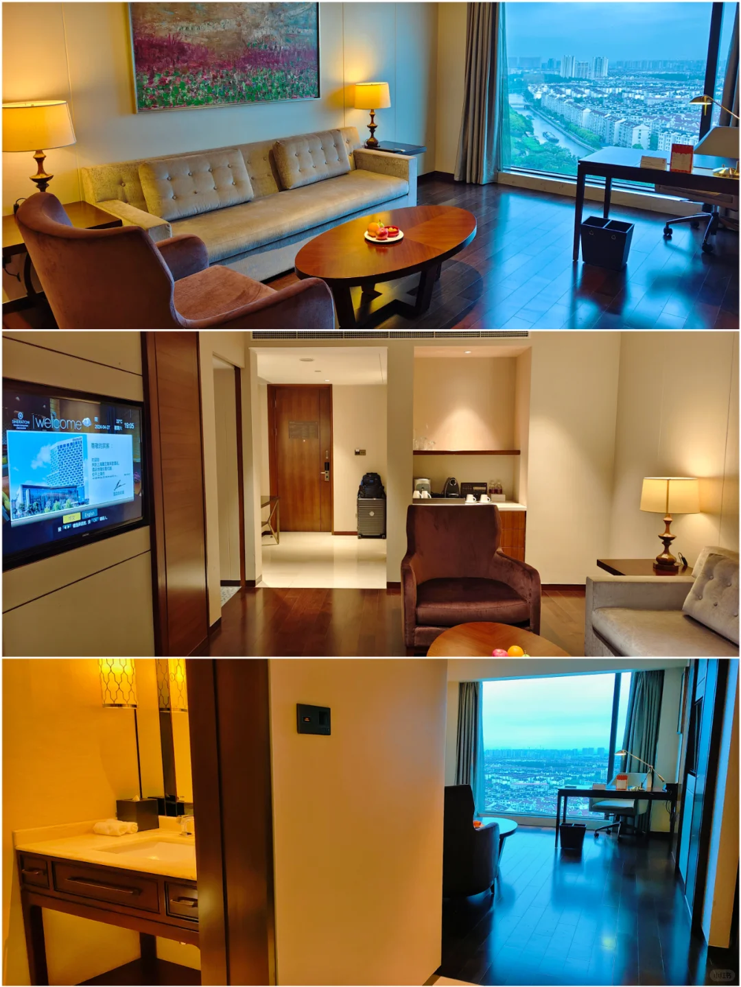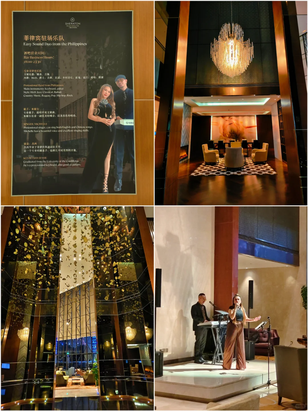 上海嘉定喜来登 ,位于嘉定区菊园新城,大堂位于一楼,整体装修是老派的喜来登商务风, 大堂吧很漂亮,还有菲律宾驻场乐队。(P1~P4)。
