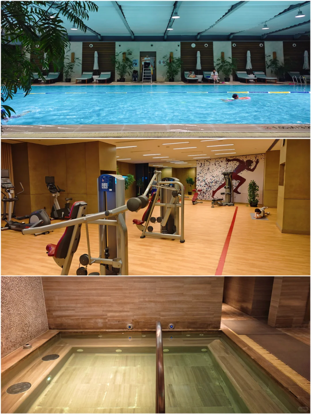 健身房和游泳池都在5楼,还有一些儿童池,更衣室配备按摩泡池和桑拿房。 (P14)。