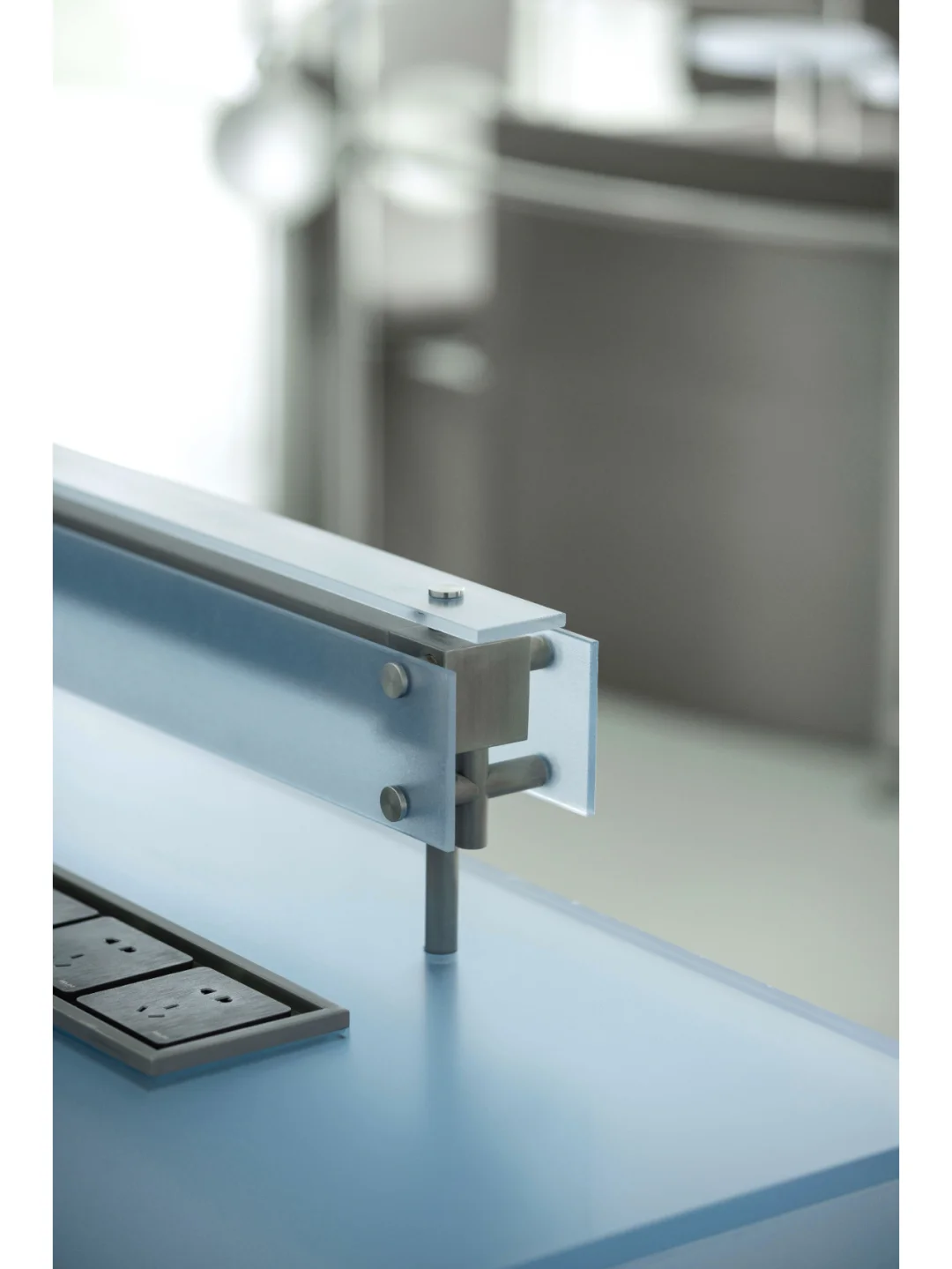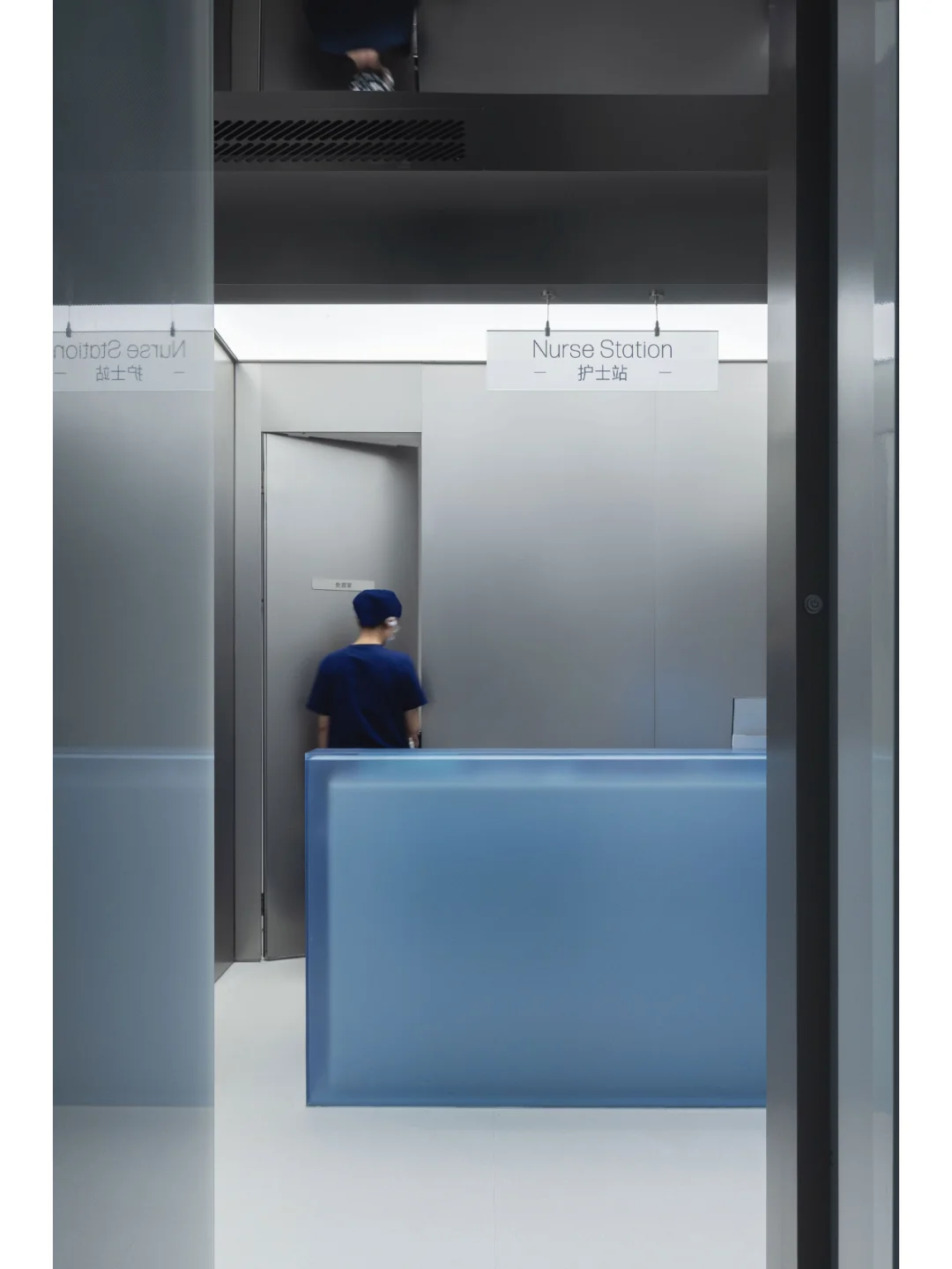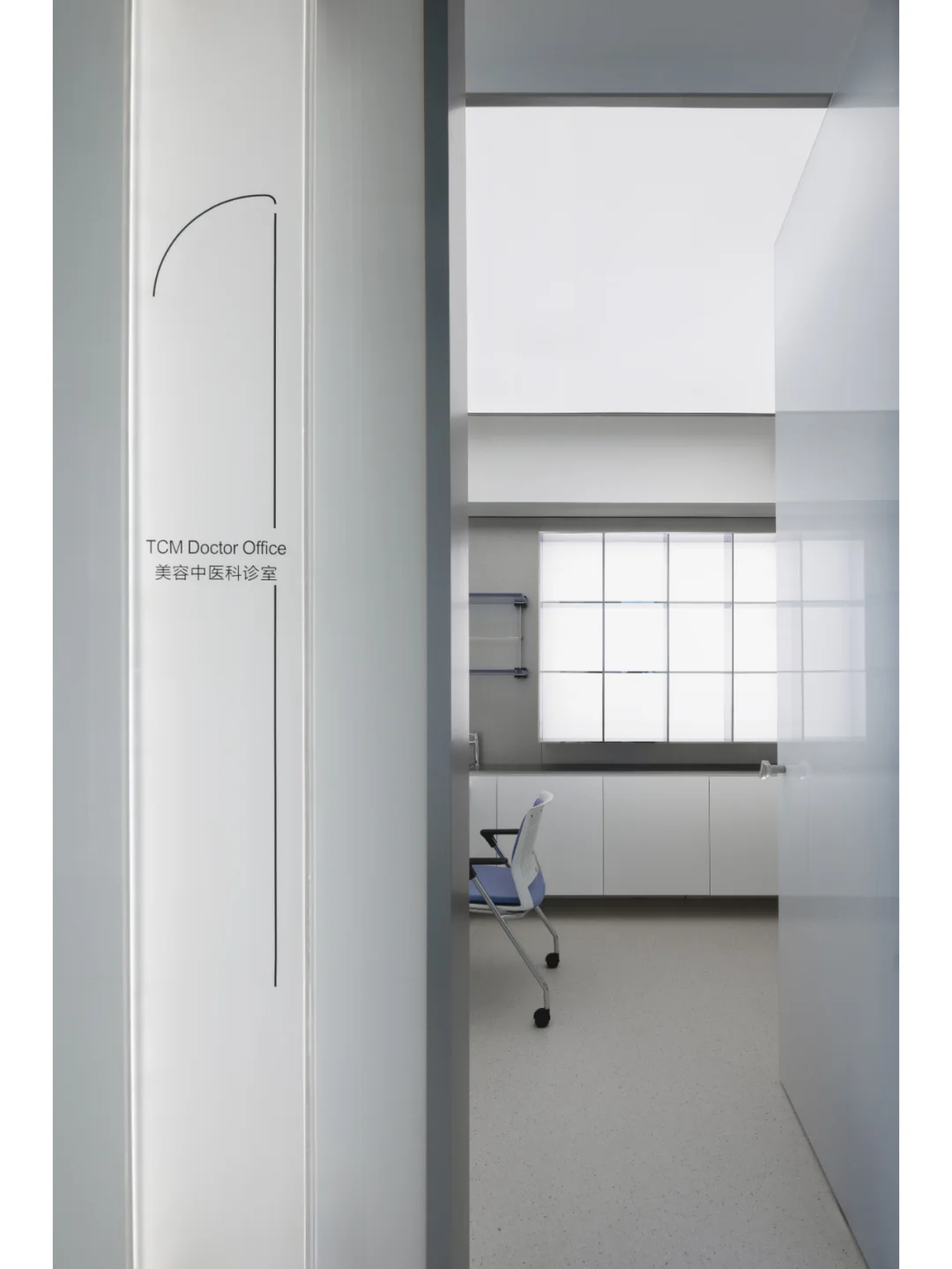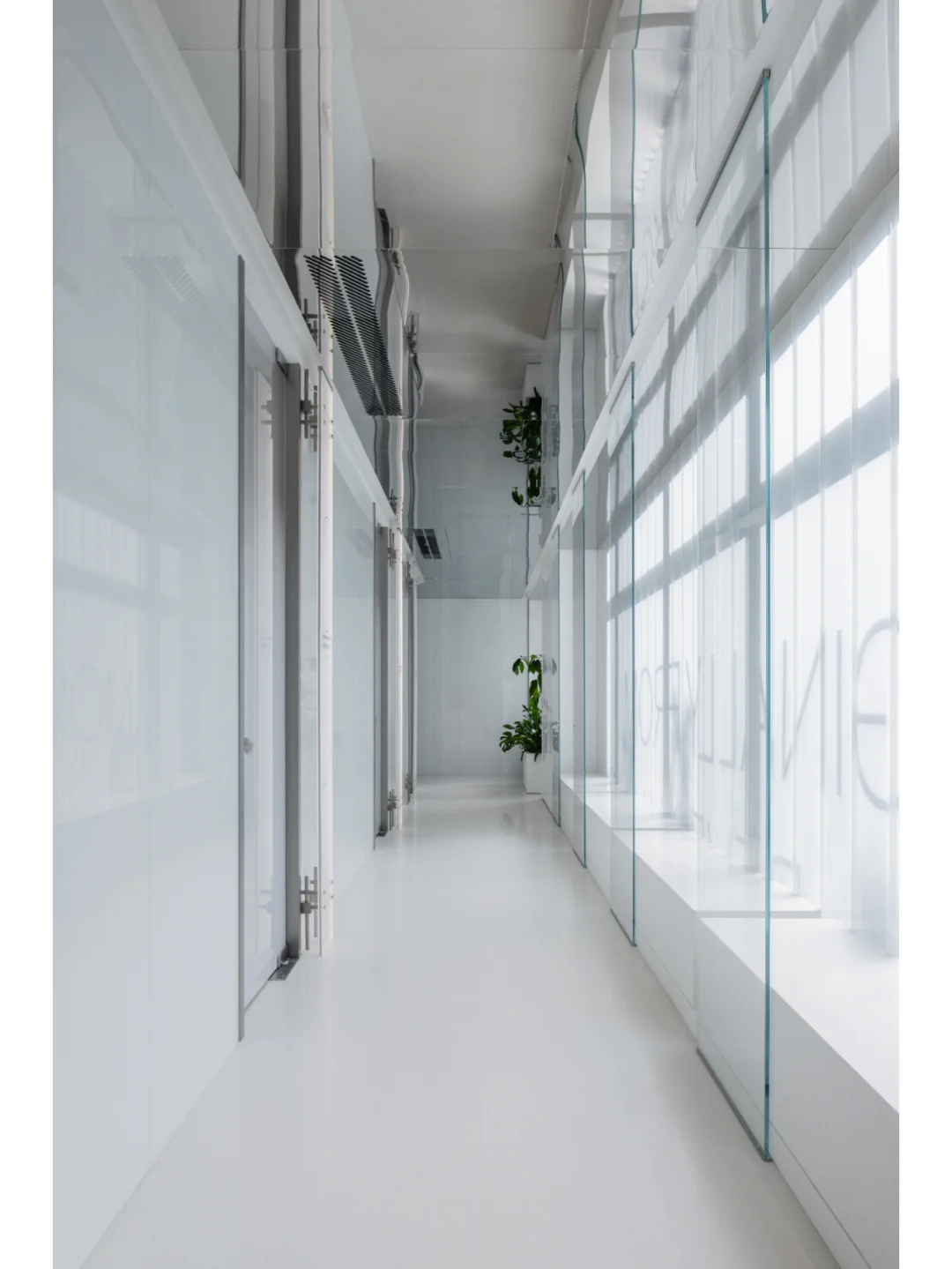 在围绕Rodeo柔缇欧提出的 “生物科技” 这一理念展开的讨论中,半筑设计重新梳理出品牌关键词 ——“专业、高效、科技、未来”,制定了一套从视觉语言到空间语言高度统一的全新品牌标准,设计了一系列空间道具来强化品牌气质,如悬浮且内部透光的亚克力接待台、接待区的弧形道具以及墙面弧形陈列架等。