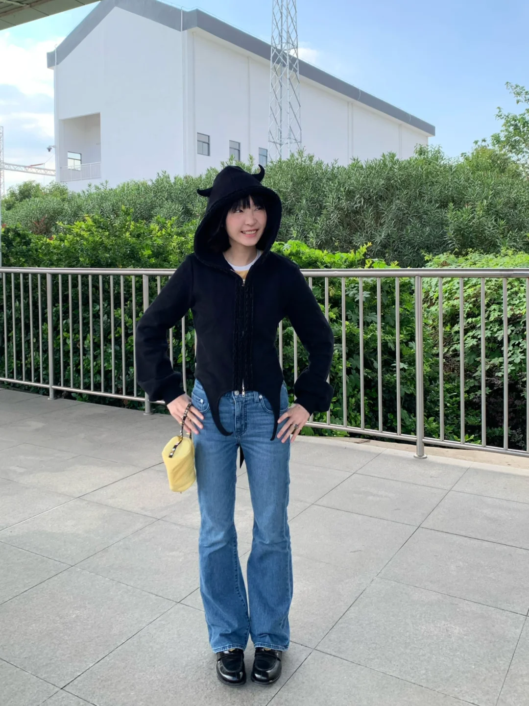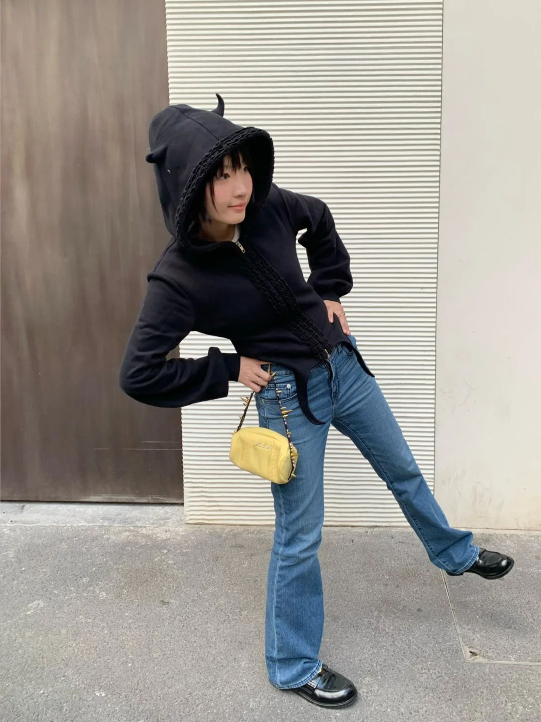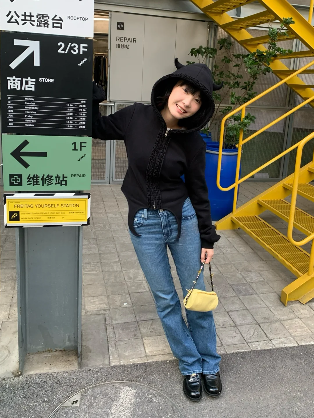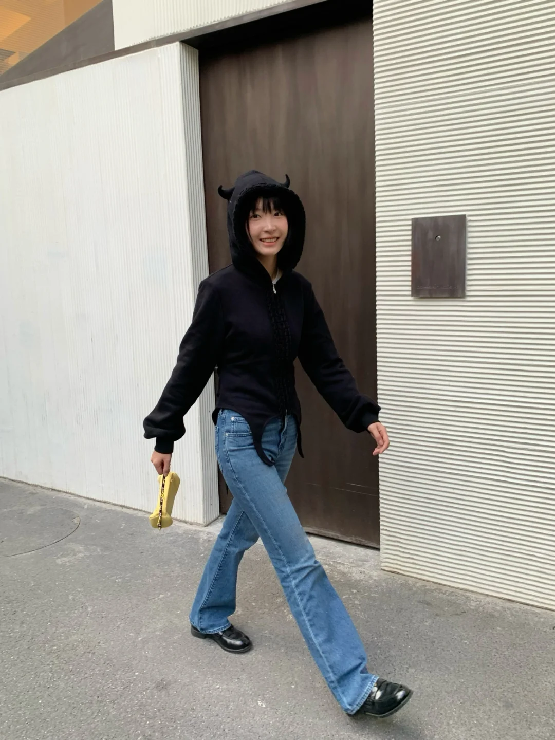 万圣节快到啦🎃大家有想好怎么过吗!今天咱们就是主打一个万圣节休闲look!可爱的恶魔小外套加上有点小微喇的👖平时通勤也是很百搭哦!