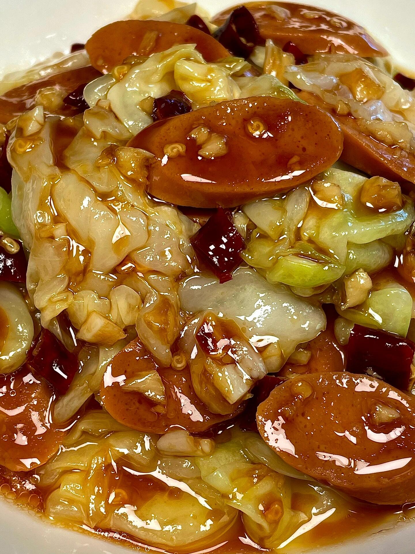 包菜爽脆可口,火腿肠焦香焦香的,香辣入味真的巨好吃!配米饭嘎嘎香,姐妹们一定要试试!! 食材:包菜➕火腿肠➕蒜末➕干辣椒 做法:如图所示!