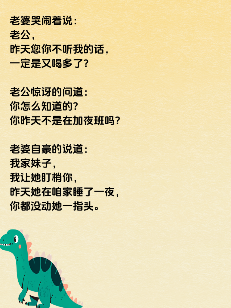 昨晚我老婆问我:“好久没那啥了,今晚感觉还行,亲热亲热?”我跟她说我累得慌,没心
